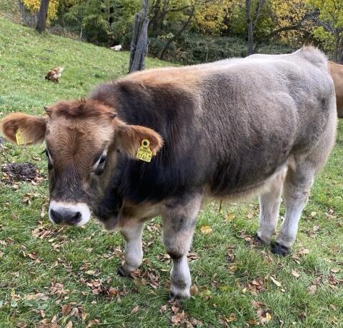 Zutrauliche Murbodner Kalbin, geb. 11.07.2024, V: Puma, behornt, Gentyp. vorhanden.