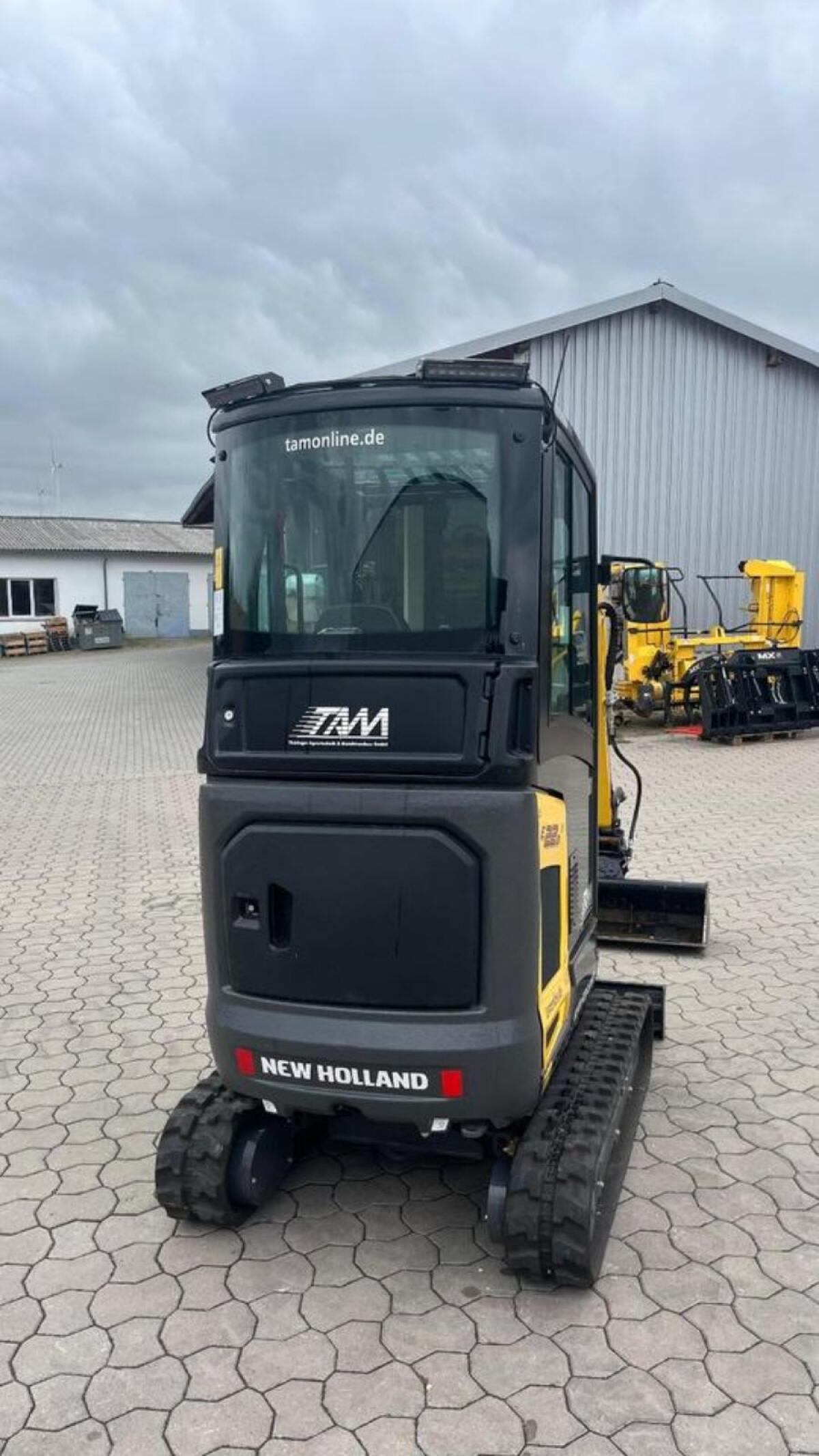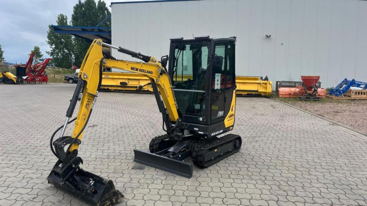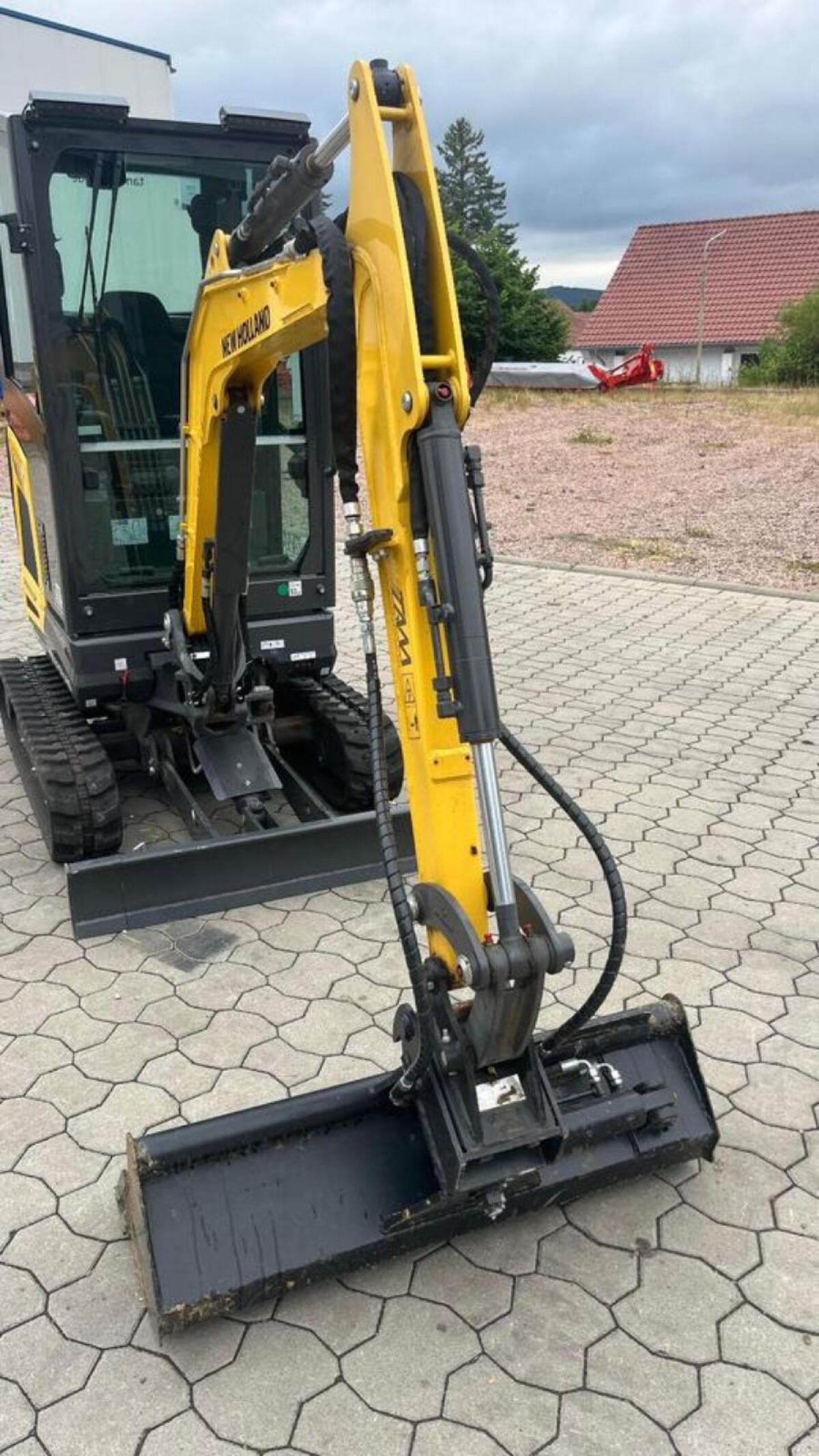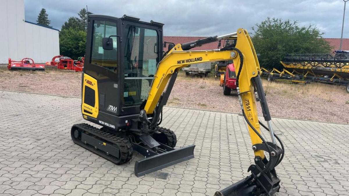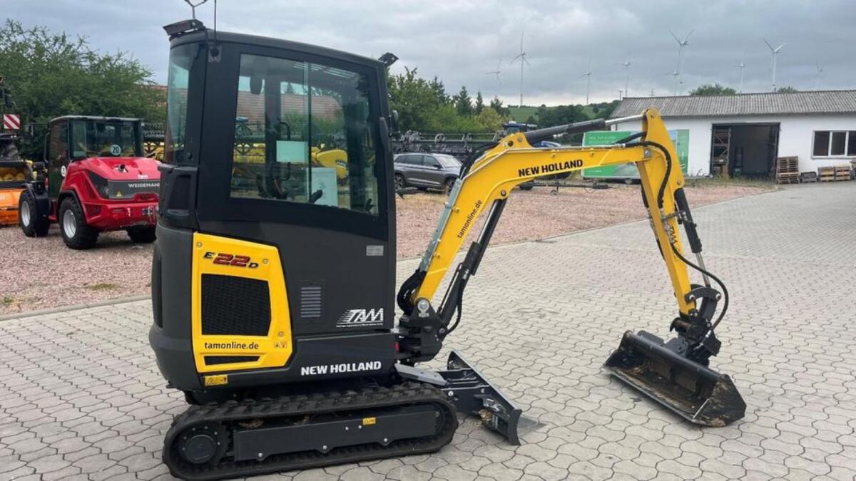 New Holland Minibagger E22D CAB-AG Sofort verfügbar! Der angegebene Preis beinhaltet die aktuelle gesetzliche MwSt. Technische Daten: Kubota Dieselmotor, 1.105 cc, wassergekühlt, Leistung 20,9 PS, Abgasnorm Stufe V und Tier 4 Final, Load Sensing Hydrauliksystem mit Flow Sharing Steuerblock, variable Axialkolbenpumpe, kippbare Kabine (ROPS-FOPS Level 1), Heizung, Lüftung, Rückspiegel, elektrohydraulische, proportionale Vorsteuerung, Schwenkausleger, hydr. Zusatzkreis einfach-/doppelwirkend, max. 50 l/min, Betriebsdruck max. 200 bar, hydr. verstellbares Fahrwerk (990-1.300 mm), zwei Stufen Fahrantrieb manuell schaltbar (Stufe 1 und 2), Stiellänge 1.250 mm.
