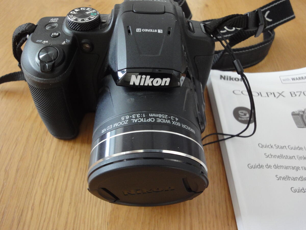 Verkaufe eine gebrauchte Nikon Coolpix B7000 inkl. Ladestecker, Beschreibung und Tasche mit Regenschutz.