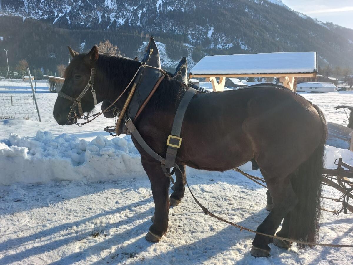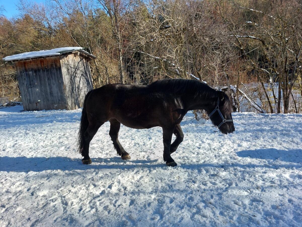 Aufgrund Bestandsverkleinerung abzugeben. Noriker Passgespann, Rappen. Vollgeschwister. V: Grandios Vulkan, M: Trixi Blanca. Beide sicher zweispännig gefahren, re. und li. der Deichsel, kennen Straßenverkehr, stehen beim Halt ruhig, die meisten km auf Schneefahrbahn gefahren. Beide einspännig angefahren. Schmiede- und verladefromm, wurden gealpt, verträglich in der Gruppe und mit Vieh. Wallach, 4-jährig, Stute 6-jährig, mit 7,64 2a ins Stutbuch aufgenommen, nicht trächtig, auch an Umzügen gefahren. Auch einzeln oder mit Schlitten abzugeben. Preisklasse: € 8.000,- – € 9.000,- pro Pferd, als Gespann, VHB. Standort Lechtal.