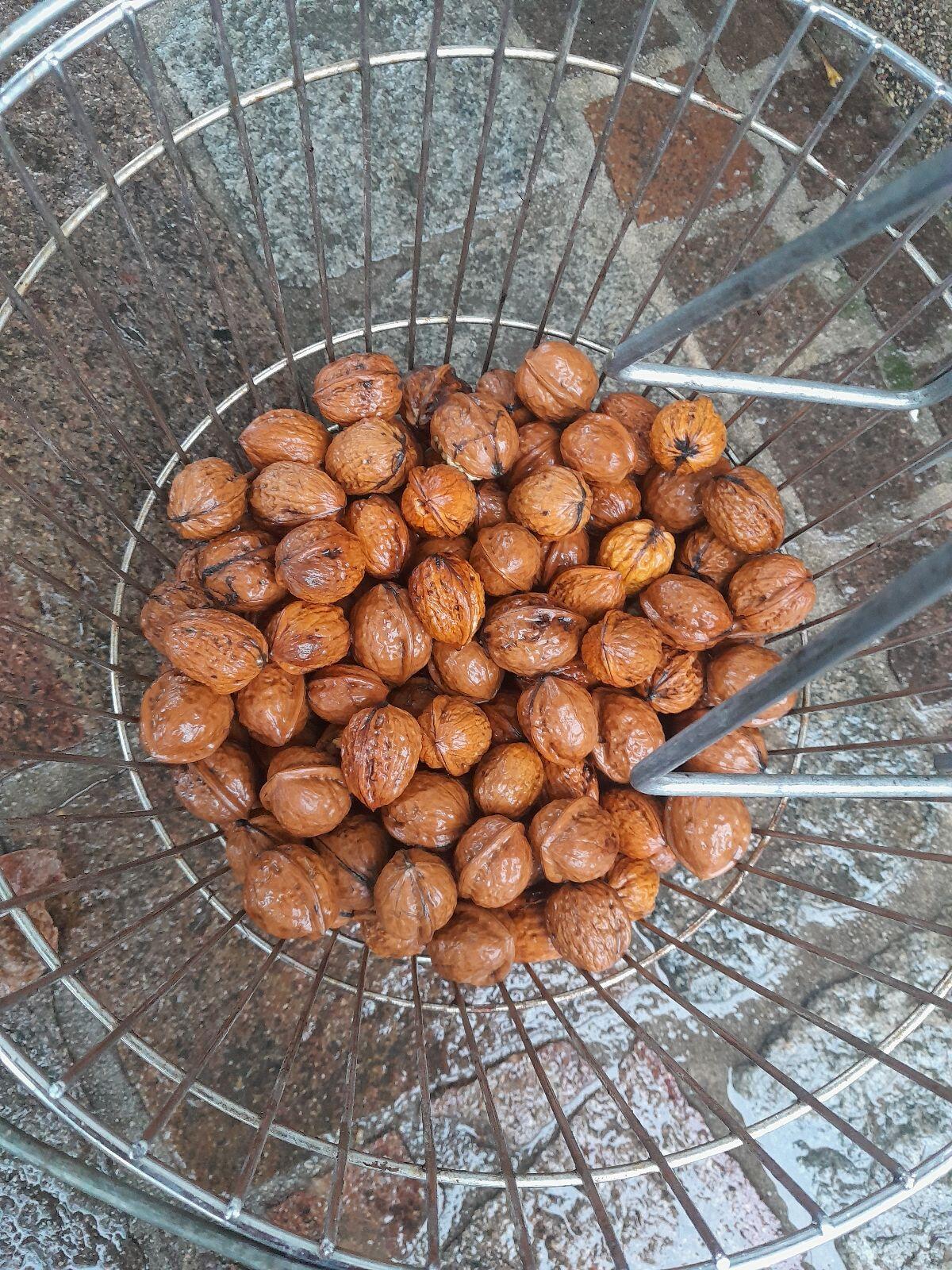 Frische Nüsse, getrocknet, pro kg € 4,-.