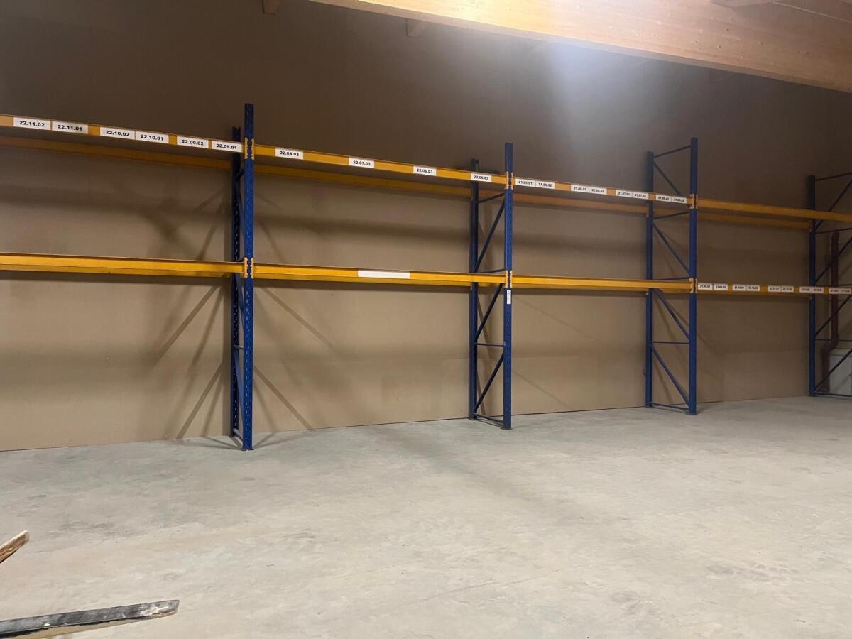 8 Steher und 20 Traversen mit 3,5 m und 4 Traversen mit 4,3 m mit einer Traglast von 4.500 kg. Das Regal ist bereits abgebaut. 2 Steher 4,05 m, 4 Steher 4,10 m, 2 Steher 4,6 m.