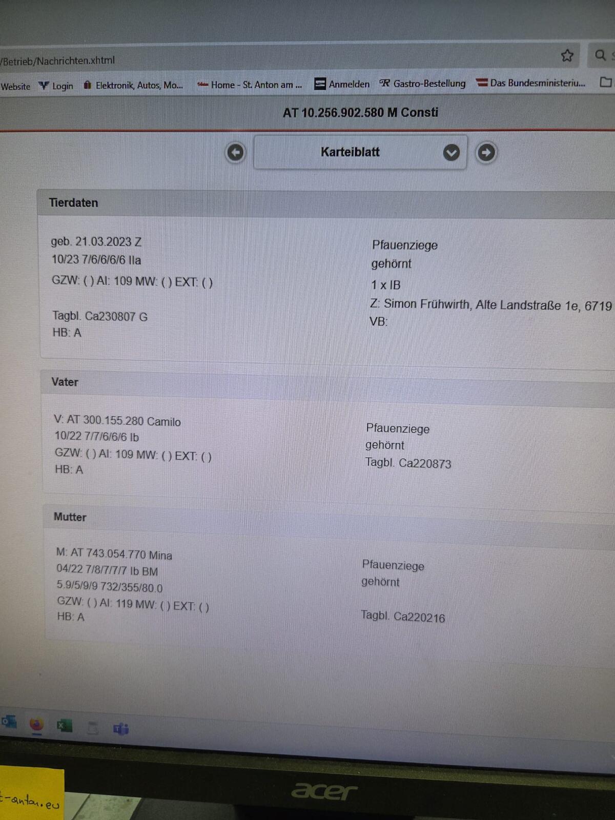 Wir verkaufen unseren Pfauenziegenbock 'Consti', geb. 21.03.2023. Bewertung und alle Infos auf dem 3. Bild. Er hat einen angenehmen Charakter und ist nicht aggressiv.
