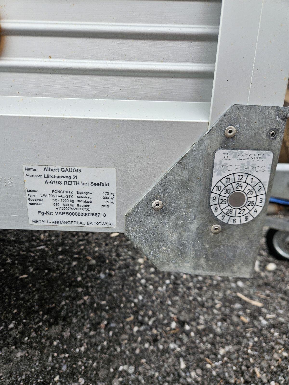 Hat noch Pickerl bis 2026. Hat einen kleinen Schaden an der rechten Aluwand, wurde ausgebogen und funktioniert wieder alles einwandfrei. Ladefläche 206x106x30 cm.