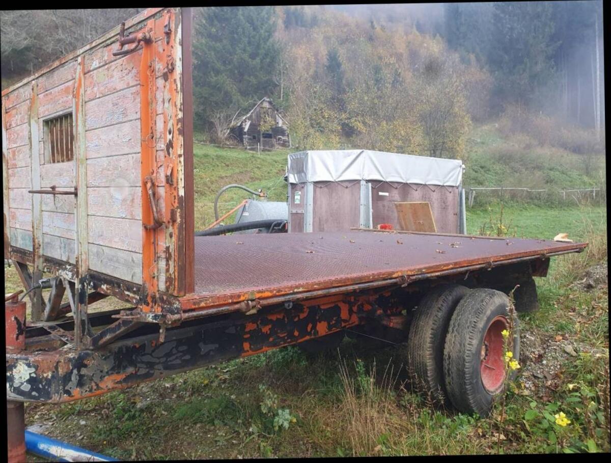 Plattformanhänger zu verkaufen. War einmal Steyr 380. Ladefläche 480 cm x 235 cm. Bereifung 8,25 20.