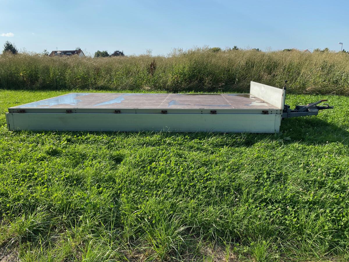 Plattformanhänger zul. GG 1.500 kg, Nutzlast 950 kg, Bj. März 2010, Marke Steininger aus Österreich. Außenmaßen des Kastens mit 4.600 mm x 2.500 mm x 300 mm, Innenmaß des Kastens 4.500 mm x 2.450 mm x 300 mm, Deichsellänge ca. 1.400 mm. Links, rechts und hinten sind die Bordwände abklappbar und zum Aushängen. 14 Zurrösen (vorne 2, hinten 2 und li./re. je 5 Stk.). Höhe der Plattform ca. 550 mm + 300 mm Bordwandhöhe. Rahmen und Bordwände sind aus Aluminium, Boden aus Siebdruckplatten. Anhänger stand zu 98 % in der Garage. Der Anhänger ist gebraucht/hat Gebrauchsspuren, TÜV bis März 2026. Keine Rücknahme, keine Garantie, Privatverkauf. Preis VB. Standort Nähe Dillingen/Donau, Bayern/DE.