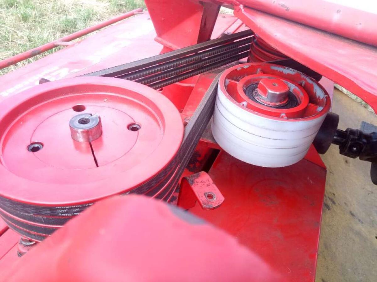 Zwei Trommeln, dadurch ideal zum Eingrasen. Technisch komplett überholt. Alle Lager (SKF u. FAG), Dichtungen und Riemenscheiben ersetzt. Klingenschnellwechsel, stufenlose Schnitthöhenverstellung, 540 oder 1.000 U/min, Drehrichtung umkehrbar für Metrac (Mähtrak) oder Traktoren mit Rückfahreinrichtung, 545 kg. Zustellung möglich.
