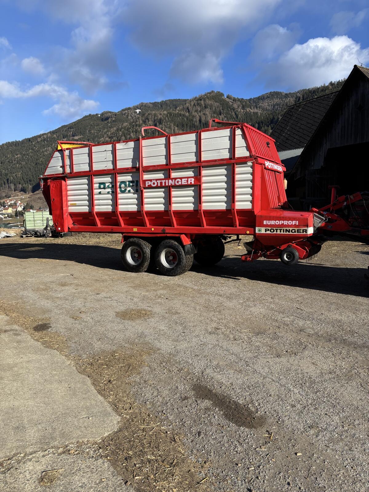 Pöttinger Europrofi, Rotorladewagen mit 31 Messer und Dosierwalzen, sehr viele Teile bereits erneuert, Getriebe der Dosierwalzen vorne und hinten neu, Antriebszahnräder und Kette der Pickup neu, Antriebszahnräder und Kette vom Rotor auch vor 3 Jahren getauscht, sowie wurde er letzten Herbst neu bereift.