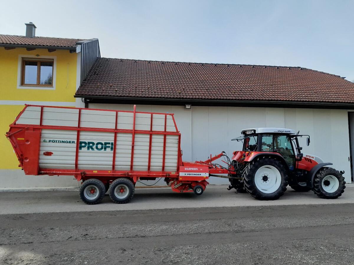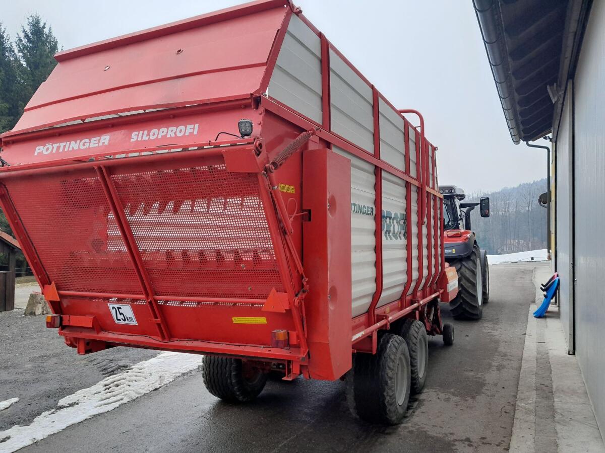 Pöttinger Siloprofi 1, Bj. 1992, el.-hydr. Bedienung, Messerbalken hydr. schwenkbar mit 33 Messer, 2 Dosierwalzen, Druckluftanlage, 19,45/17 Reifen, Wassermaß 22 m³ Ladevolumen, gepresst ca. 40 m³. Eigengewicht 4.300 kg. Ladewagen sofort einsatzbereit, guter Zustand.