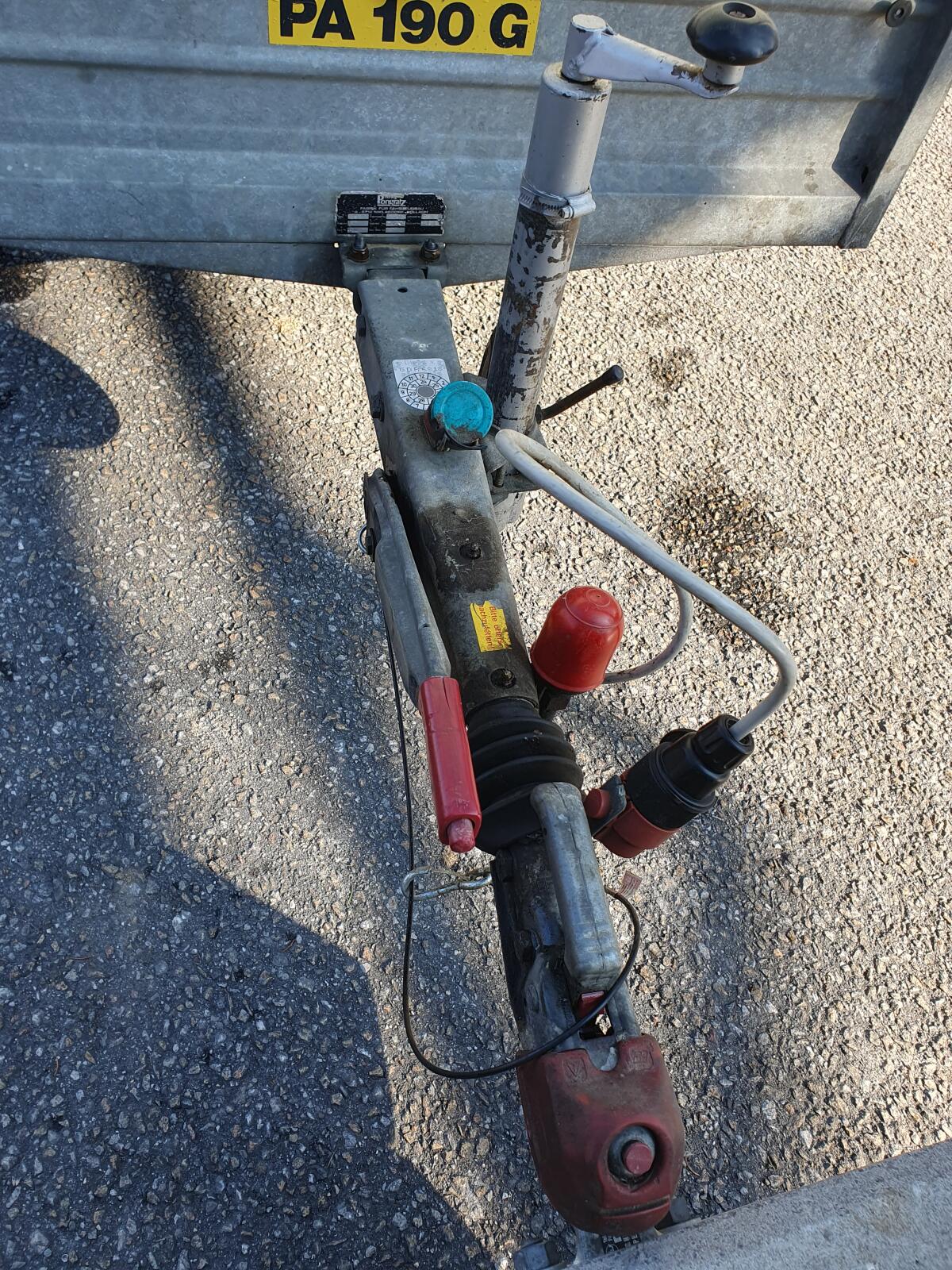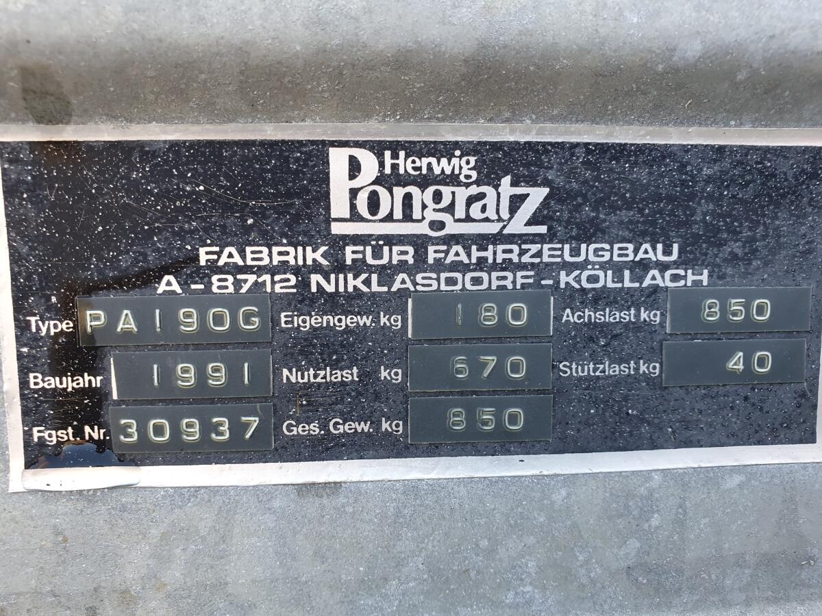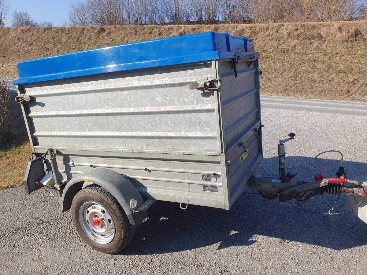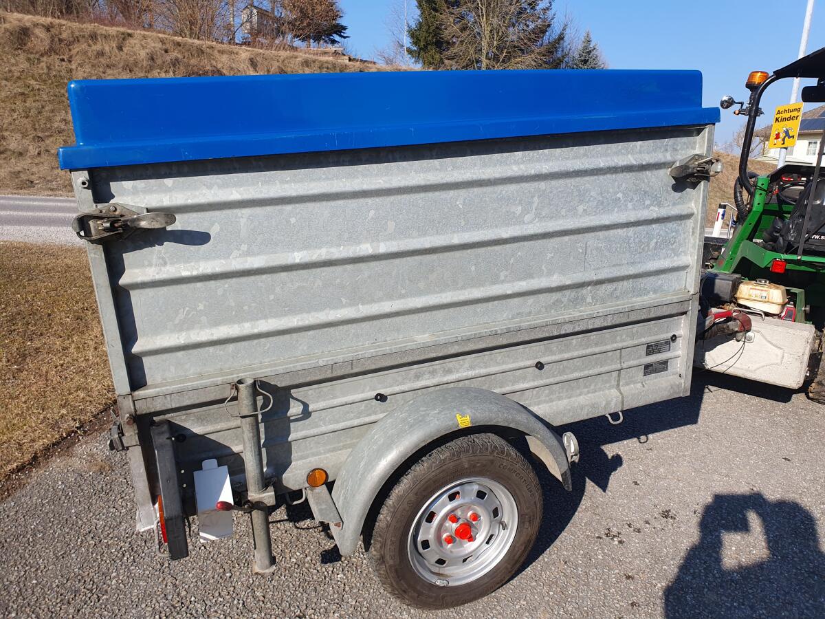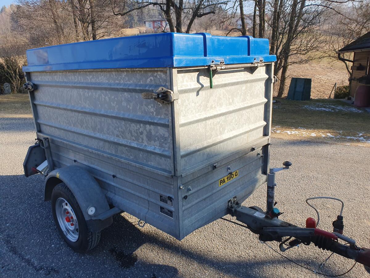 Kein billiger Baumarkt-Anhänger, verzinkt mit stabilem Aufbau, Aufsatzwänden, Abstellstützen, Verzurrösen, Planenknöpfen, Abstützung für hintere Bordwandauslegung, Adapter für 7/13-polige Stecker mit Halterung, Gummimatte als Bodenschutz, versperrbarer Polyesterdeckel mit Abstützung, leicht abnehmbar, Softdeck-Aufprallschutz, Bj. 1991, aber garagengepflegt, auflaufgebremst, nur wenig in Verwendung, da 2. Anhänger, Bremsseile, Bremsbeläge und Radlager erneuert. Superzustand. Pickerl bis 01/2026. Maße/innen: L=183 cm, B=105 cm, H1=35 cm, H2=97 cm. Bereifung: Semperit 155 (80-13), Felgen 4,5x13. Eventuell mit 2 Stk. Reserverädern auf Alu-Felgen. Eigengew.: 180 kg. Gesamtgew.: 850 kg. Nutzlast: 670 kg.