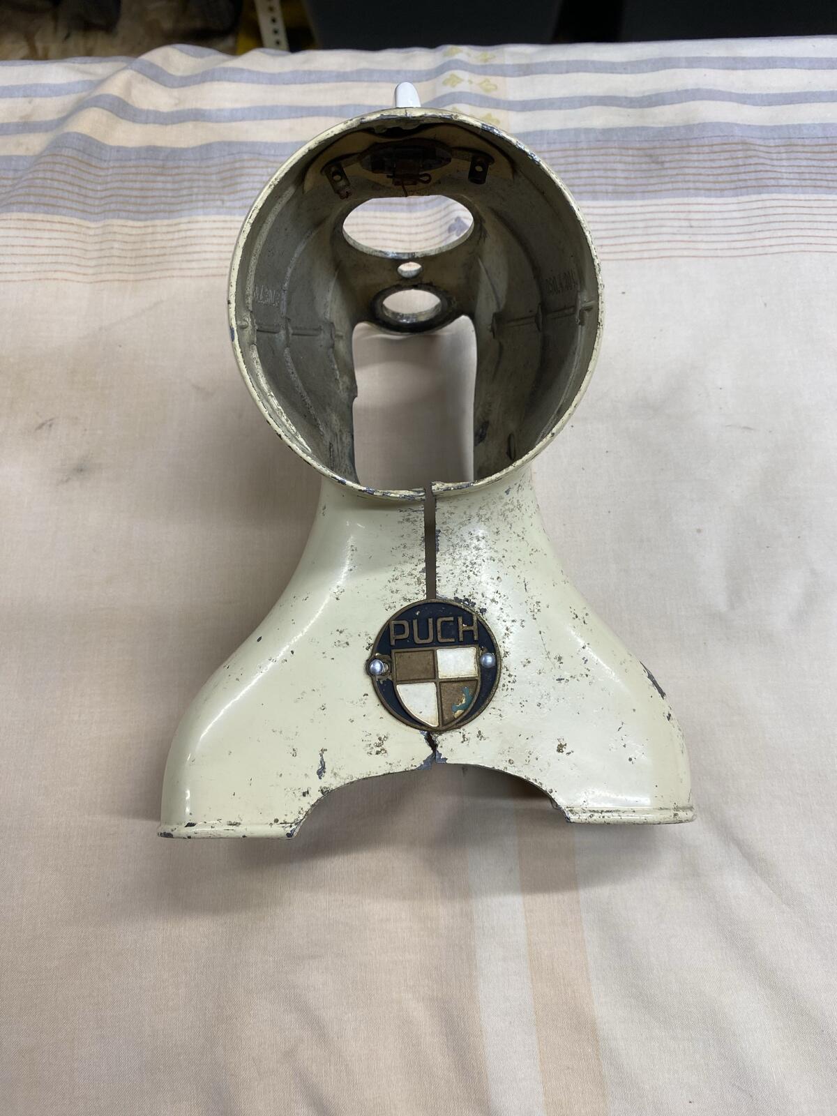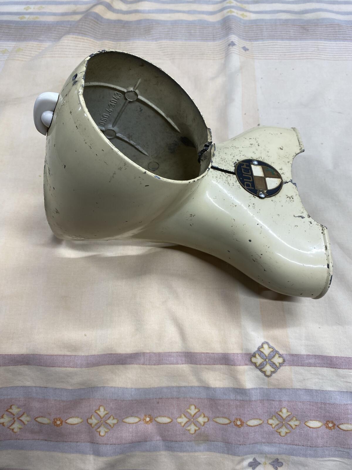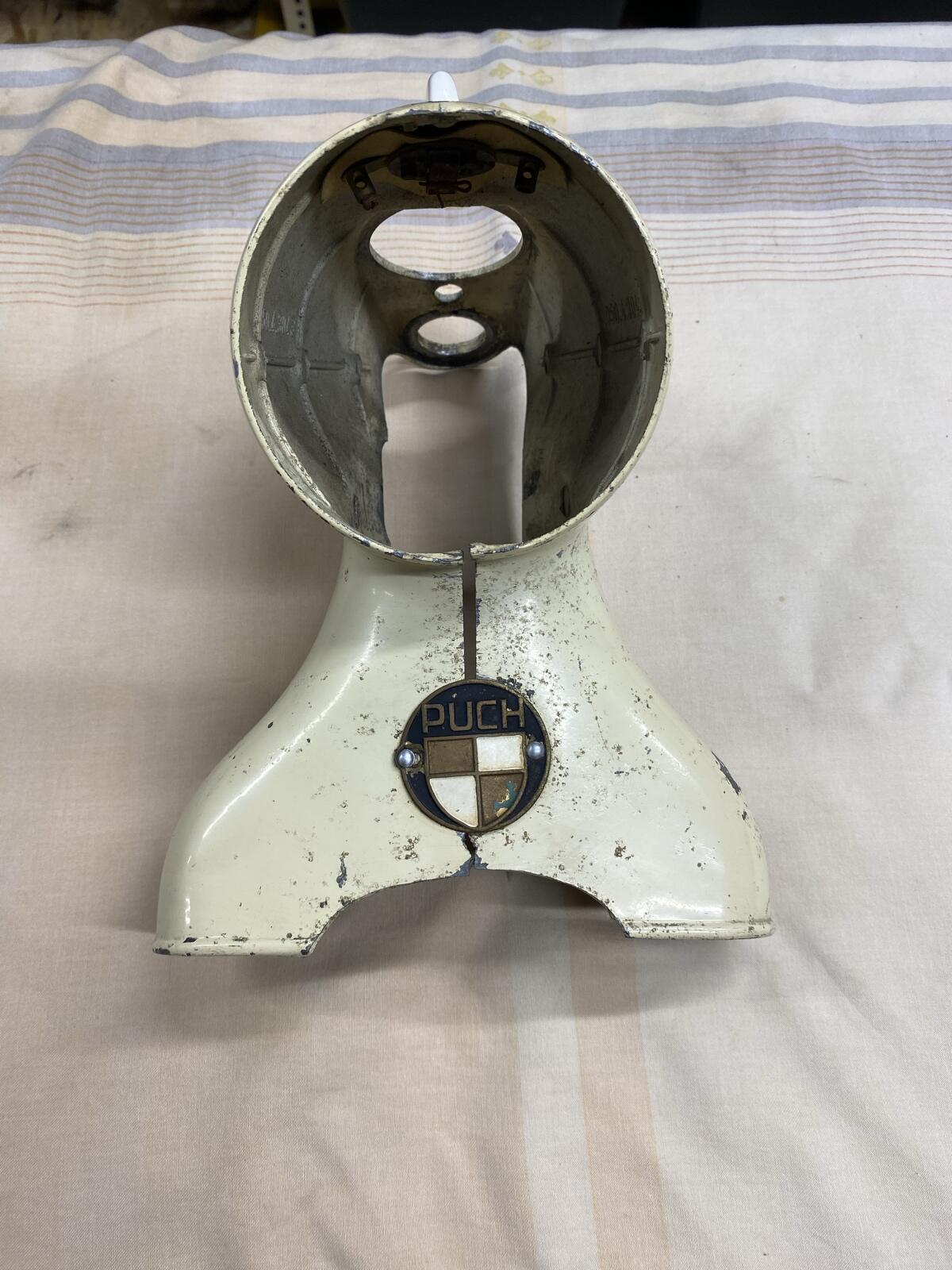 Verkaufe hier eine sehr schöne originale Lichtmaske im Original Lack Beige für die Puch VS 50 Modelle wie VS 50 L, VS 50 D etc. Original, perfekt für Patina-Restaurierung! Leider ist vorne die Schweißnaht etwas aufgerissen, aber lässt sich sicher wieder reparieren bzw. zusammendrücken und 1 Hefter machen! Siehe Fotos. Versand ist selbstverständlich möglich, kostet ca. € 6,-. Bei Fragen gerne melden.
