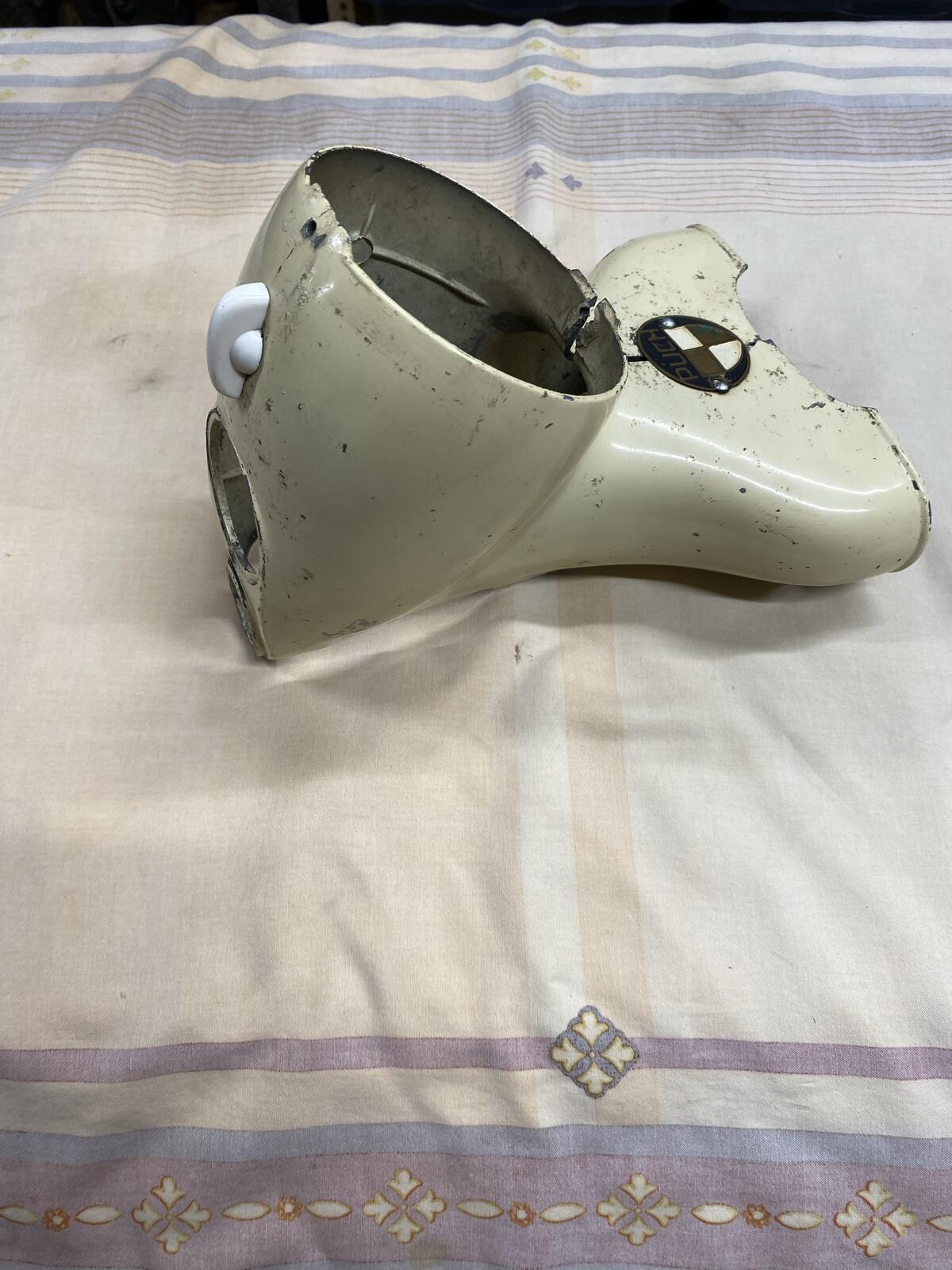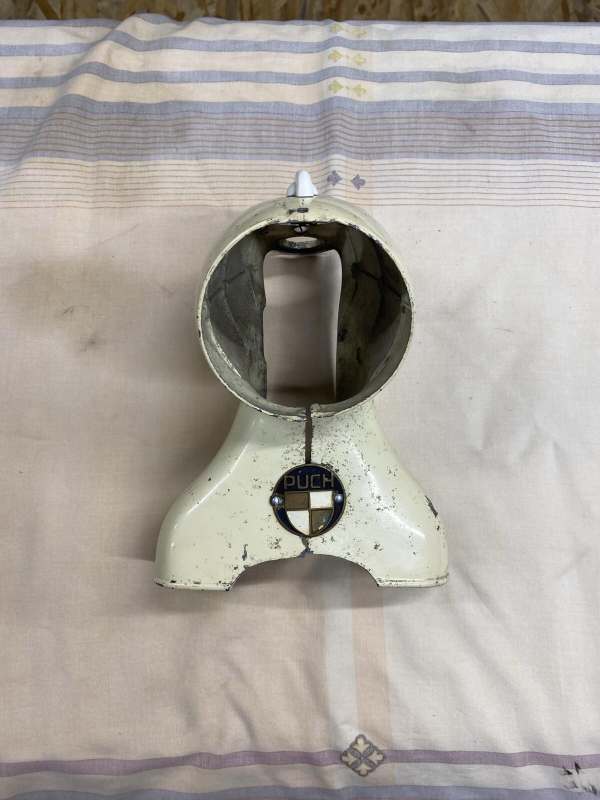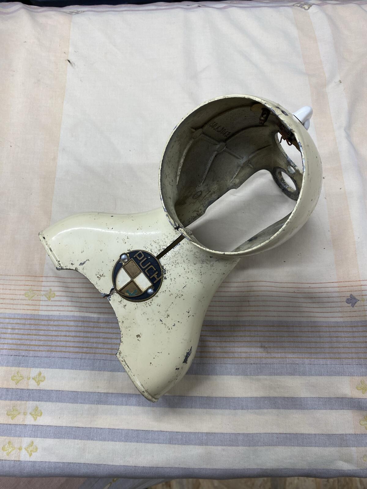 Verkaufe hier eine sehr schöne originale Lichtmaske im Original Lack Beige für die Puch VS 50 Modelle wie VS 50 L, VS 50 D etc. Original, perfekt für Patina-Restaurierung! Leider ist vorne die Schweißnaht etwas aufgerissen, aber lässt sich sicher wieder reparieren bzw. zusammendrücken und 1 Hefter machen! Siehe Fotos. Versand ist selbstverständlich möglich, kostet ca. € 6,-. Bei Fragen gerne melden.