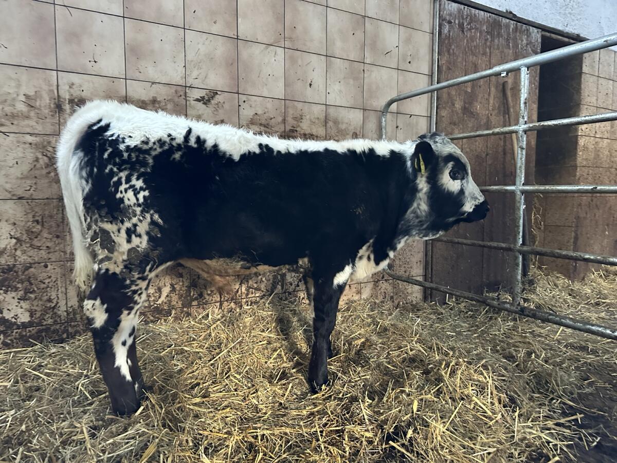 Pustertaler Sprinzen Stierkalb, aktuell ca. 4 Monate alt. Sehr handzahm.