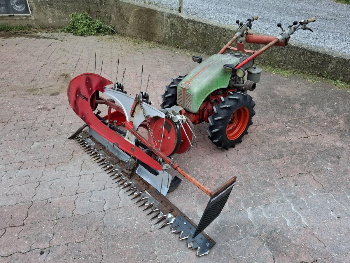 Verkaufe einen Rapid 505 Eingrasmäher in gutem Zustand. Neuer Riemen, Blech, Schürfleiste neu, Ausgleichsfeder, zwei Messer, Getriebe und Motoröl neu, Holmen geschweißt, Frontschutzblech geschweißt, Verschleißteile am Balken neuwertig, MAG-Motor läuft rund und sauber, Lichter funktionieren, Schwadanschlaggummi neu. Aufgrund des Alters wird er ohne Garantie und Rücknahme verkauft. Motormäher steht aktuell in 6941 Langenegg (Österreich).