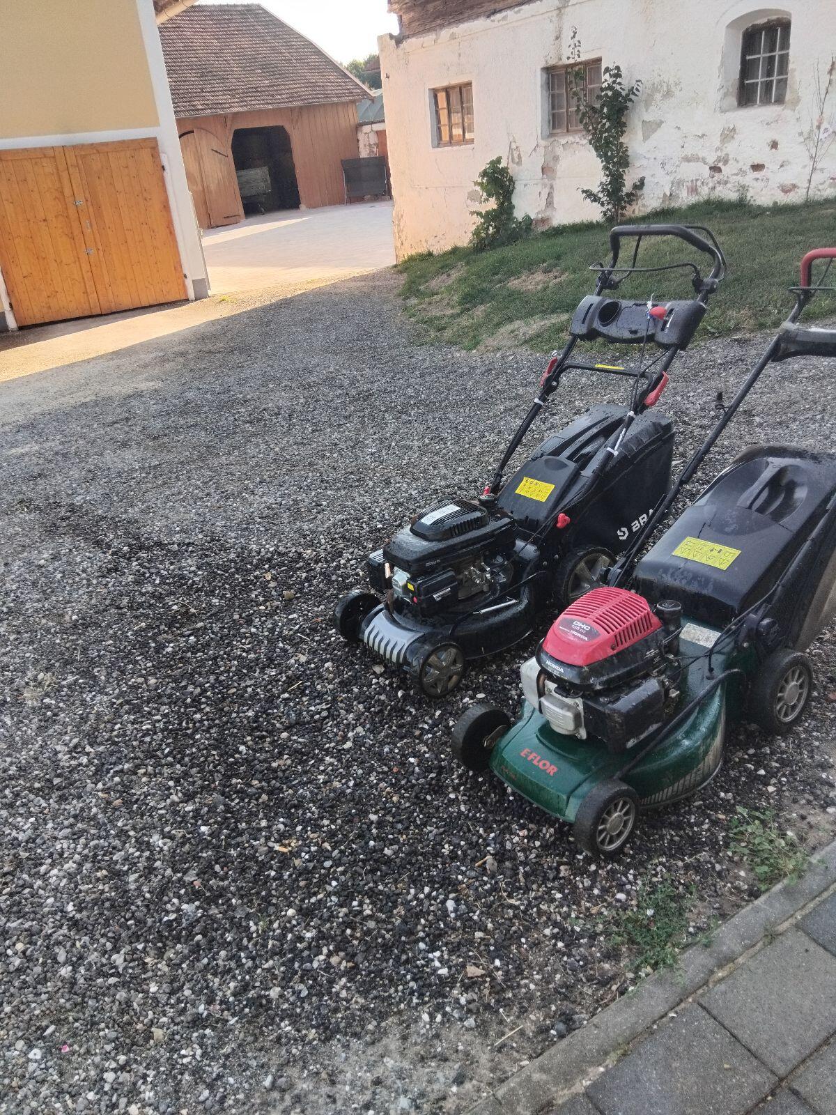 Verkaufe 2 Stk. Rasenmäher, der grüne sofort einsatzbereit, der schwarze ist neu, muss nur das Seil gemacht werden. 2 Stk. € 290,-.