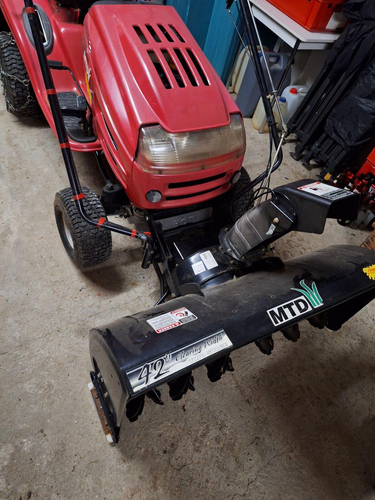 Verkaufe meinen Rasentraktor mit Schneidwerk, Fangkorb, Schneeketten und Schneefräse. Funktioniert einwandfrei. Batterie und Schneidwerkskupplung wurden vor kurzem erneuert. Natürliche Gebrauchsspuren vorhanden. Preis leicht verhandelbar.
