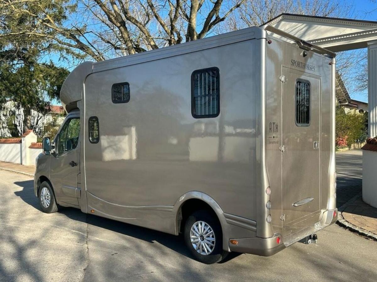 Renault Haras ATM 1-2 Pferdetransporter – 5-Sitzer, Automatik. EZ: Neufahrzeug, Leistung: 132 kW, Hubraum: 2.299 cm³, Farbe: Grau Metallic. Preis: € 66.000,-. Fahrzeugdetails: Diesel, Automatik, 5-Sitzer, Polsterung: schwarzes Leder, Klimaanlage, Radio/CD/MP3, Rückfahrkamera, Anhängerkupplung, el. Fensterheber, Multifunktionslenkrad, Zentralverriegelung, Airbags, Euro 6, grüne Umweltplakette, Mittelarmlehnen, Bluetooth, Außentemperaturanzeige. Pferdeabteil: Für 1–2 Pferde, Überwachungskamera im Pferdeabteil, Fenster im Pferdeabteil, Dachluke, Hengsttrennung, Seitenrampe, separate Türe hinten, Sattel- und Trensenhalter, zulässiges Gesamtgewicht: 3.500 kg.