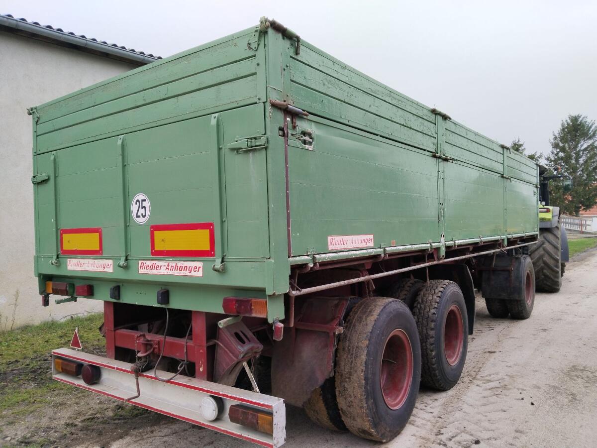 Riedler 3-Achs 2-Seitenölkipper, 80 cm Alubordwand, 40 cm Holzbordwand. Pendelwand: re. 2-Leiter Druckluftbremse.