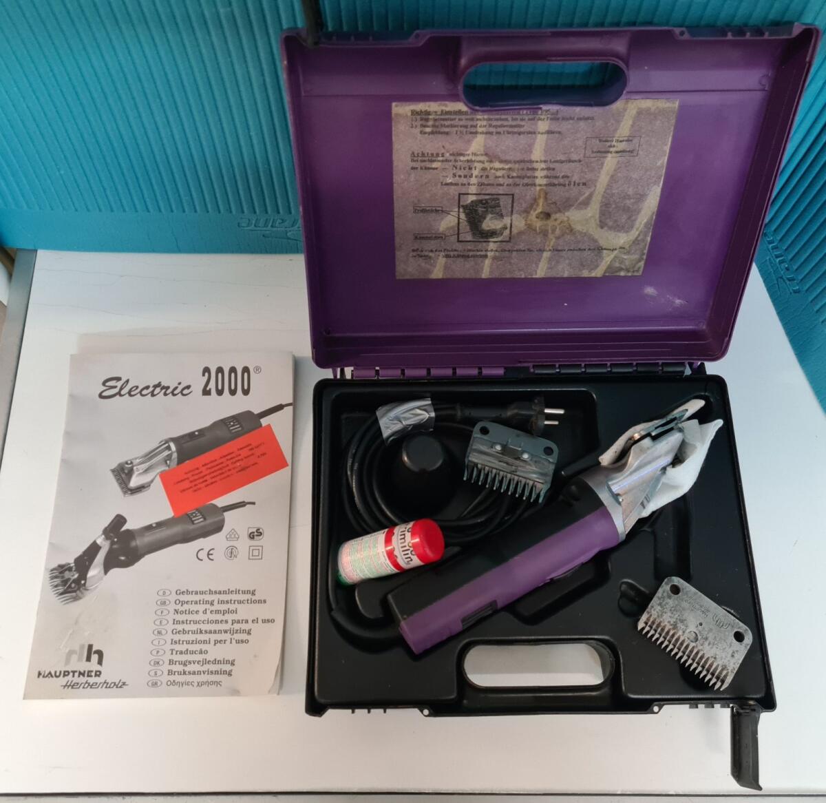 Hauptner Rinderschermaschine mit drei Garnituren Messer, Fein, Medium, Grob, gehören eventuell geschliffen. Maschine läuft einwandfrei, komplett mit Betriebsanleitung und Koffer. Wegen Aufgabe der Rinderhaltung abzugeben.