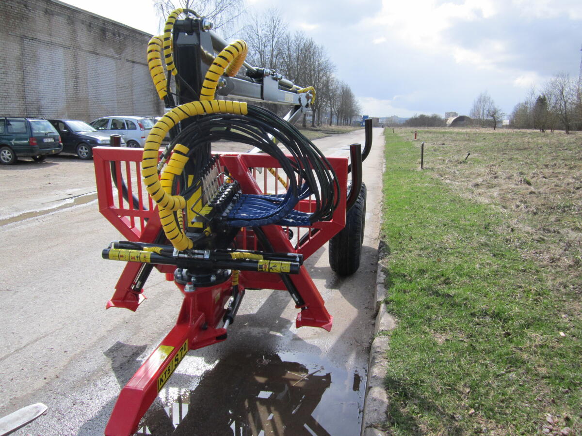 KTS7000-KTSK640 KTS Tandem-Rückewagen, zulässiges Gesamtgewicht 8.750 kg, mit 6,4 m Forstkran (Reichweite inkl. Greifer ca. 7 m), hydr. Deichsellenkung, Forstbereifung 400/60-15,5, 3 Rungenpaare, hydraulische Bremse auf einer Achse, Klappbeleuchtung, Kran 6,40 m (inkl. Teleskopausschub 1,20 m), ca. 930 kg Hubkraft bei 4 m, Eurosteuerung (2+4), Rotator 3 t. Profiholzgreifer HZI1180, 4 Zylinder Schwenkwerk, Teleskop Abstützung, € 21.900,- (inkl. Lieferung innerhalb Österreichs / bei Selbstabholung können € 500,- in Abzug gebracht werden).
