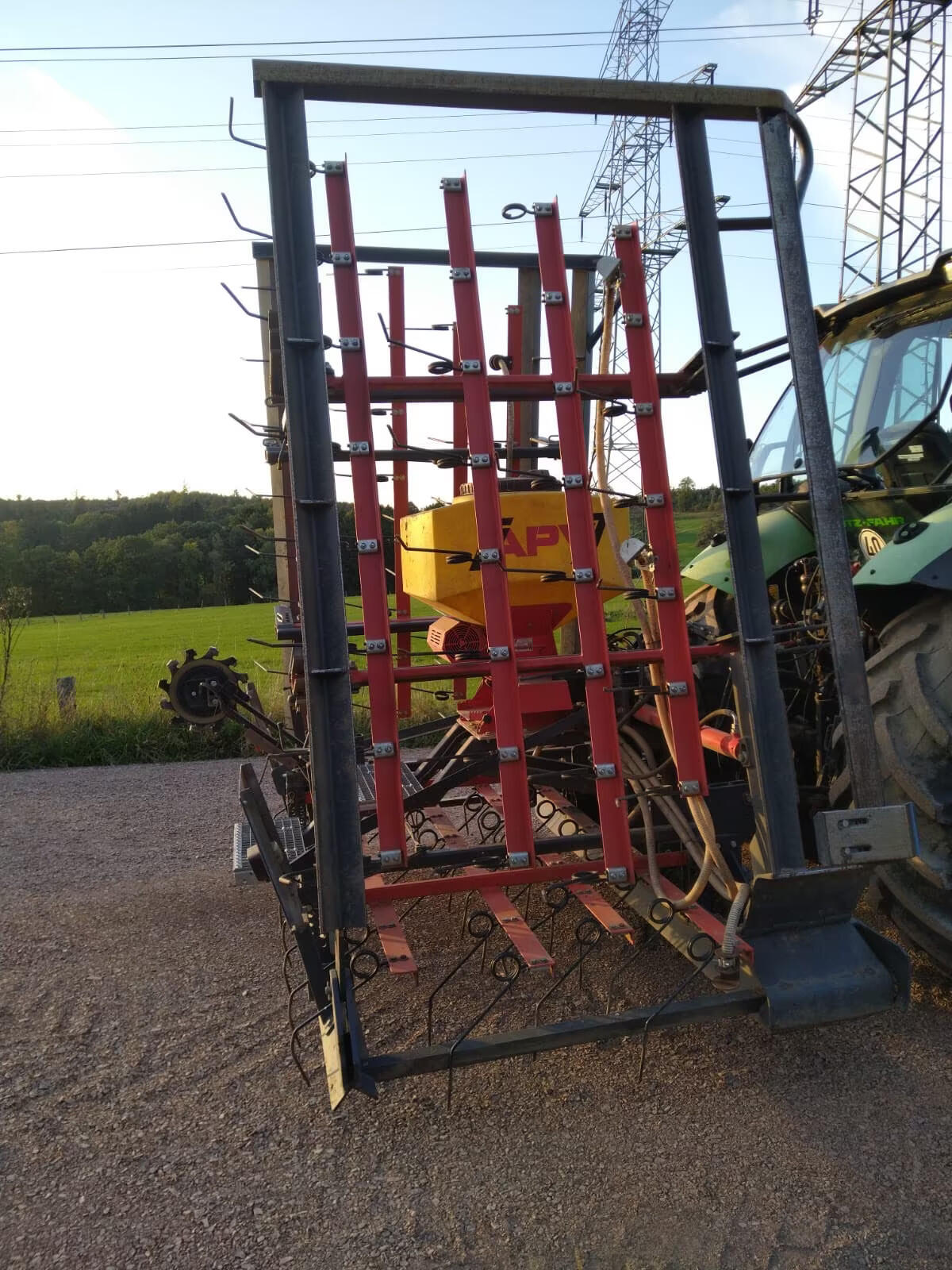 Verkaufe wegen Umstellung einen Saphir Grünlandstriegel mit 8 m AB. Aufgebaut ist eine pneumatische Sämaschine von APV PS 300 M 1 mit Bedienteil 5.2. Die Maschine hat ein Sporenrad, wodurch der Grassamen geschwindigkeitsabhängig ausdosiert wird. Sehr stabil gebaut! Hat immer trocken gestanden. Der Preis ist netto.