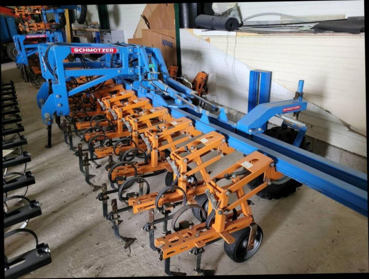 Schmotzer Fronthacke 12, 45 oder 12, 50 Vibrozinken mit Böhlerit Hartmetallscharre, große Stützräder, Doppelrahmen. Gerät befindet sich in einem schönen Zustand.