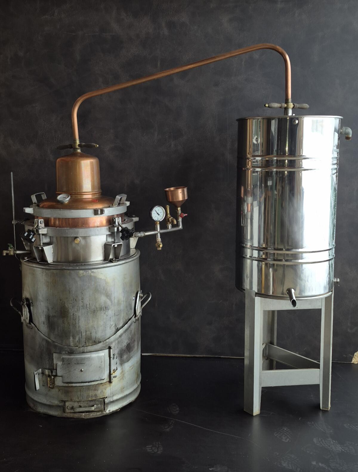 Verkaufe gebrauchte, aber top gepflegte Schnapsbrennanlage (Bj. 2004). Es handelt sich um ein Wasserbad-Brenngerät mit Holzfeuerung. Der Kessel hat ein Volumen von 75 l und eine empfohlene Füllmenge von 60 l. Die Entleerung des Kessels erfolgt durch eine Kippvorrichtung. Die Kühlung ist ein Tellerkühler mit einem großen Wasserbehälter. Eine Alkoholvorlage ist auch vorhanden. Die Brennerei ist bei der ZOLLSTELLE SALZBURG gemeldet und registriert. Verkaufe wegen Umstieg auf eine größere Anlage. Es handelt sich um einen Privatverkauf. Keine Garantie. Kein Umtausch möglich.