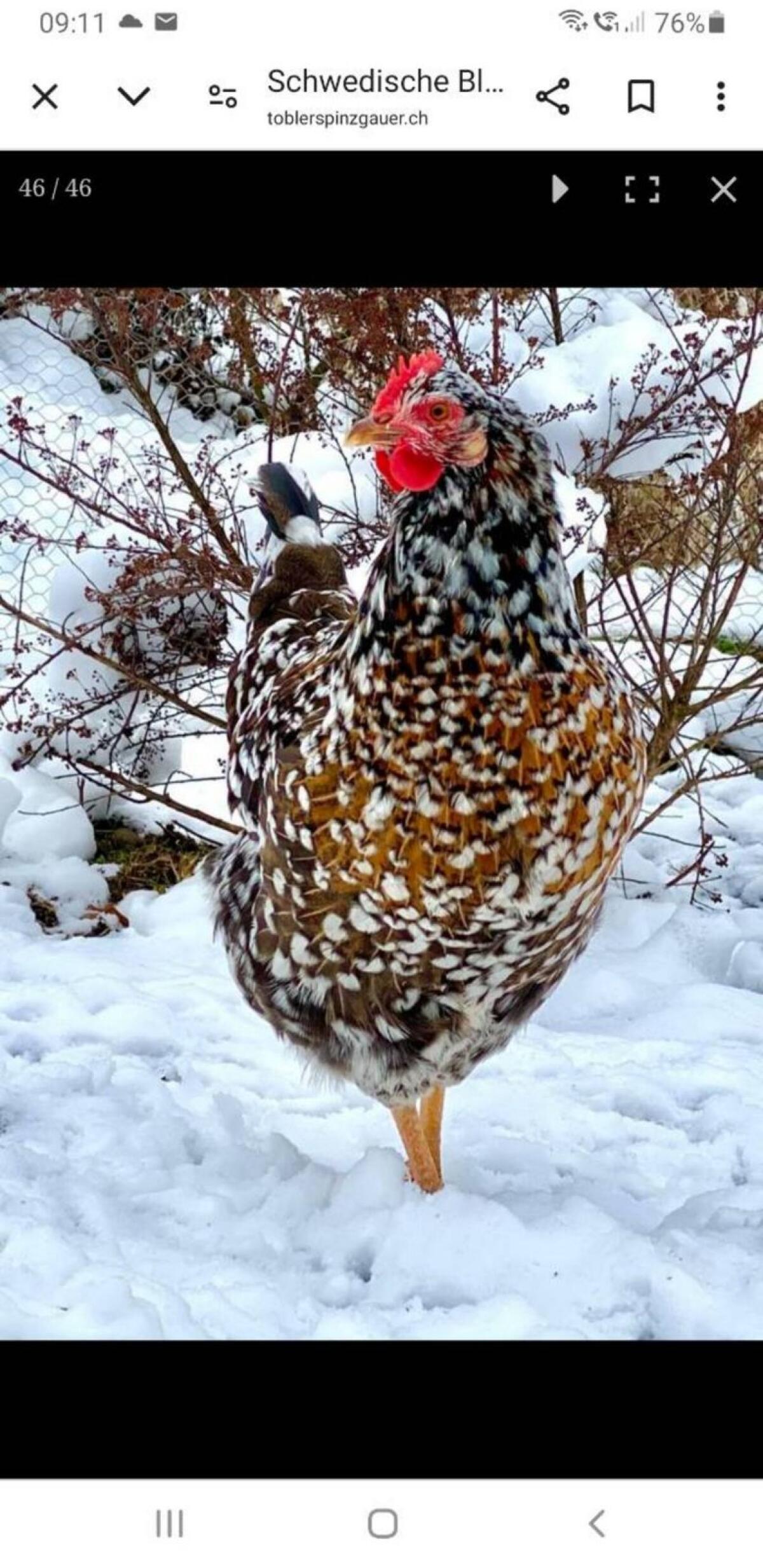 Bruteier, das Stk. € 3,-. Ist ein alter, schwedischer Landschlag des Haushuhns. Die ländlich-bäuerliche Umgebung, in der sich das schwedische Blumenhuhn entwickelt hat, liegt an der südlichen Spitze Schwedens, in der historischen Provinz Schonen. Die schönen Tiere fallen vor allem durch ihr blumiges Aussehen auf. Der Mottled-Faktor sorgt für die weißen Flecken an den Federspitzen. Das blumig-weiß getupfte Muster ist ersichtlich auf den unterschiedlichsten Hintergründen in schwarz, braun, rot, orange, gelb, blau/grau und wildfarbig. Die Körperform ist rund und robust. Im Jahr 1986 gab es nur noch ganz wenige Tiere. Es gibt wichtige Merkmale, aber keinen Standard dafür.