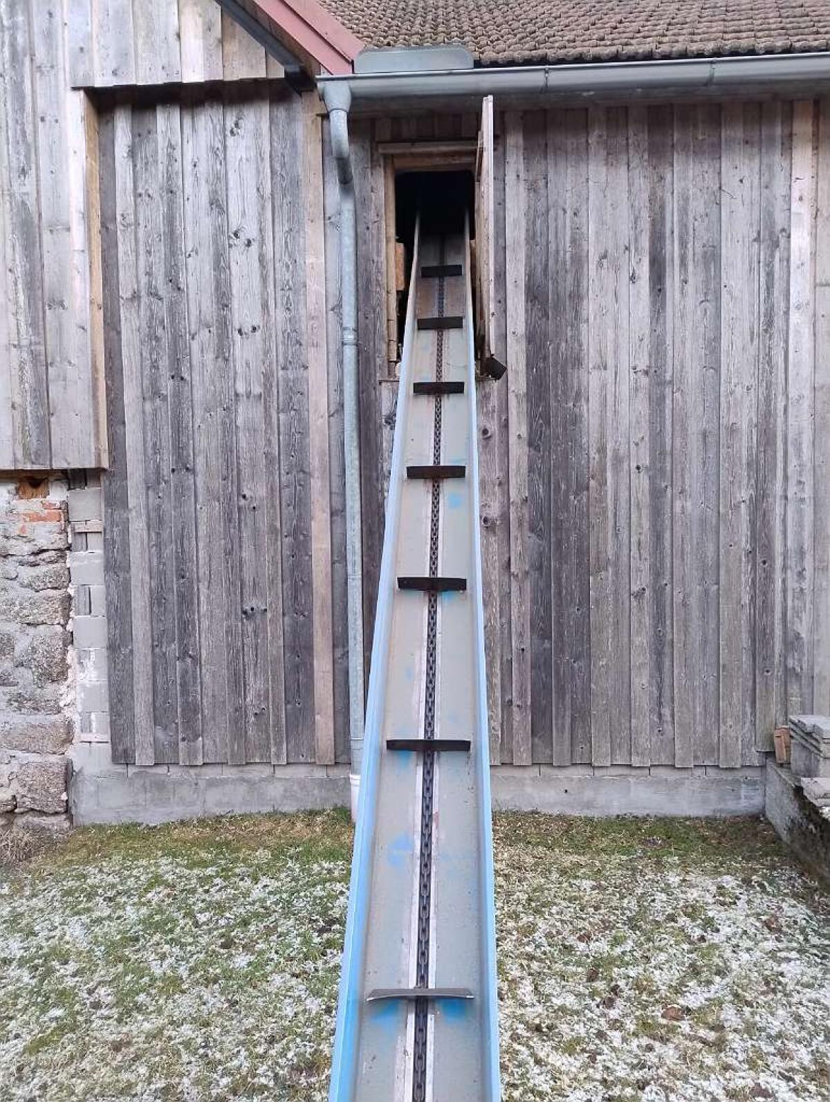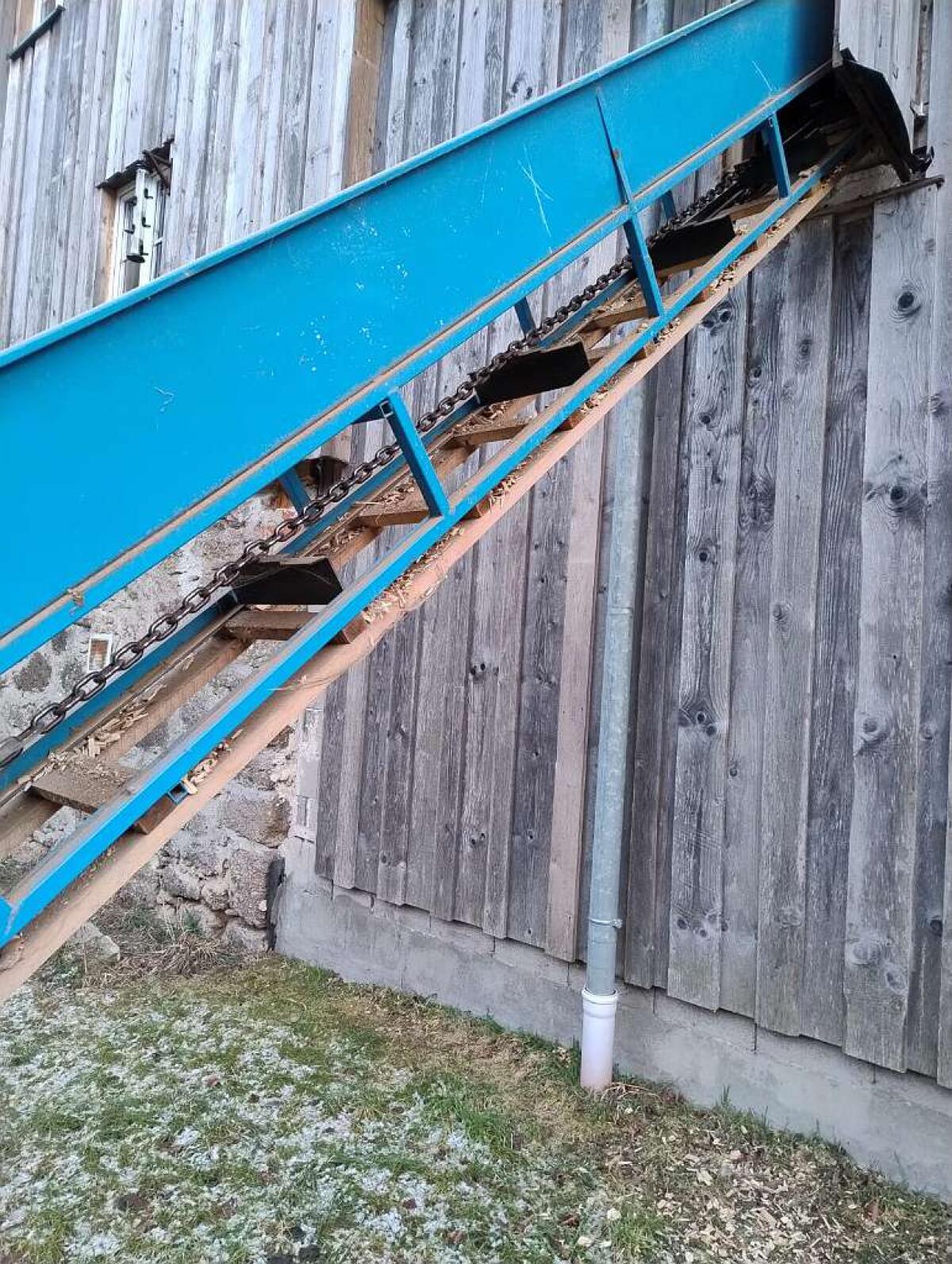 Verkaufe einen Schrägförderer, der zum Fördern von Hackschnitzeln verwendet wurde. Der Förderer ist 8 m lang und der Korb ist 33 cm breit und 23 cm hoch. Preis ist verhandelbar.