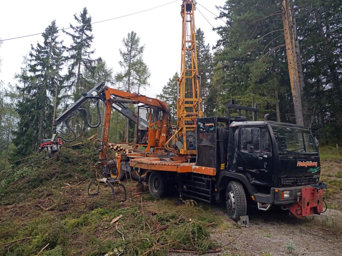 Verkaufe Seilkran K300 auf Steyr LKW. Seilkran vollautomatisiert mit Syncrotronic inkl. Masterfunk. Einsatzbereiter Zustand.