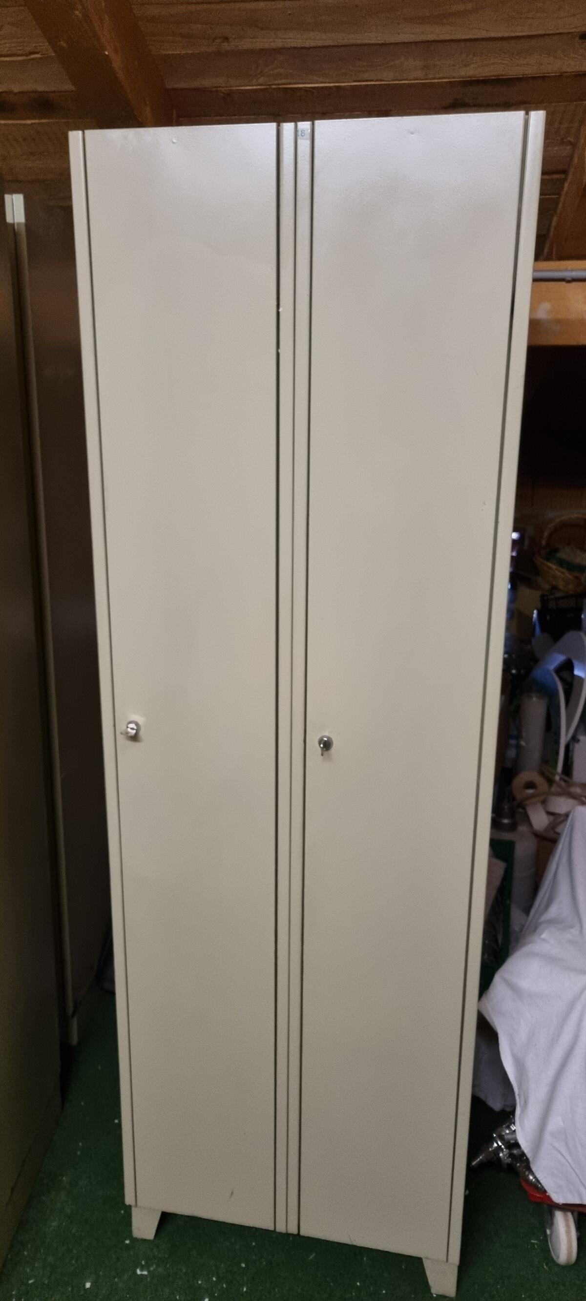H 180 cm, B 60 cm, T 50 cm, Spind 2-türig, gebraucht, 5 Stk. vorhanden, pro Spind € 40,-.