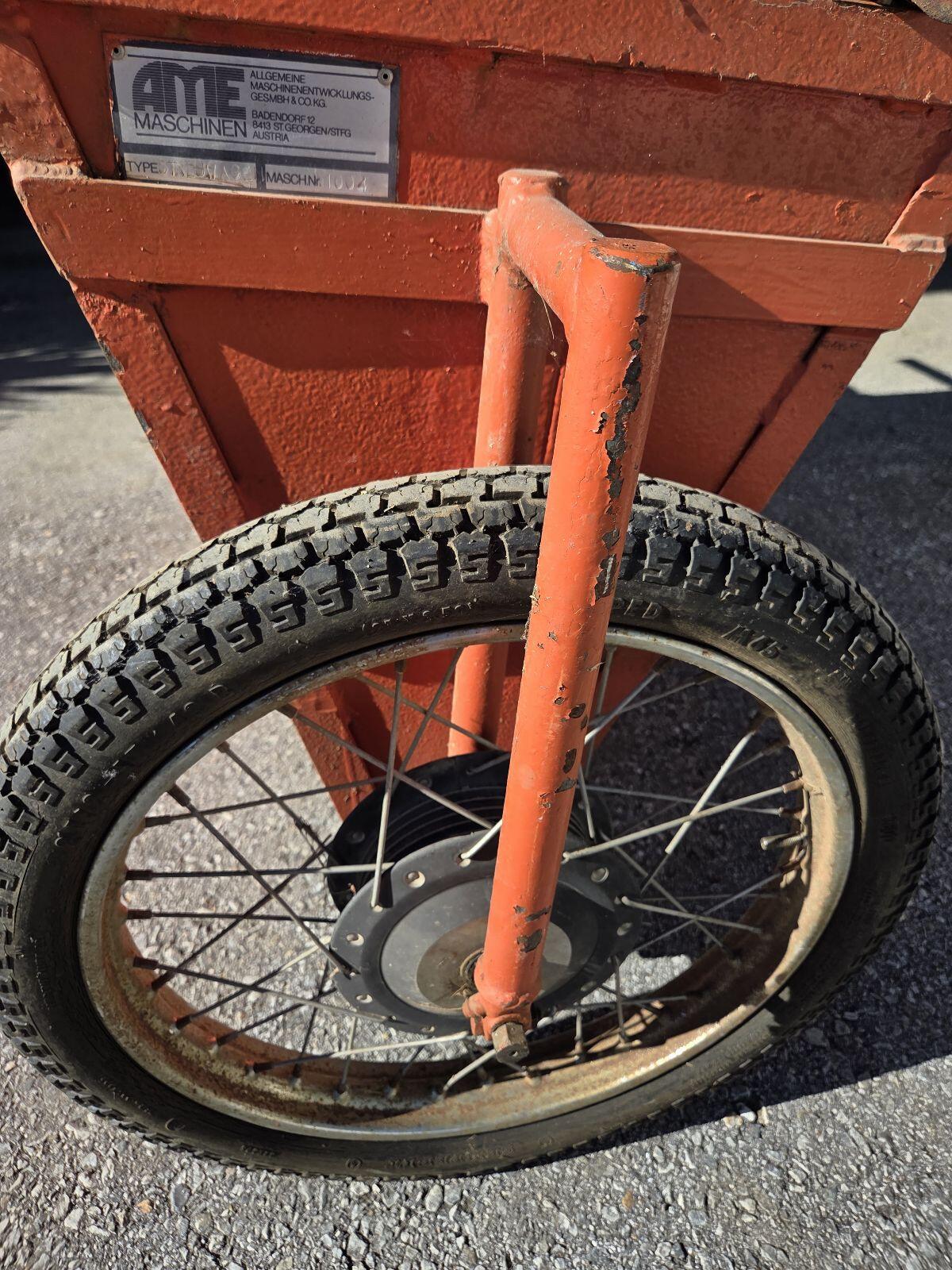 Splittstreuwagen für Winterdienst auf Gehsteigen etc., Breite 1,15 m, Streumenge einstellbar.