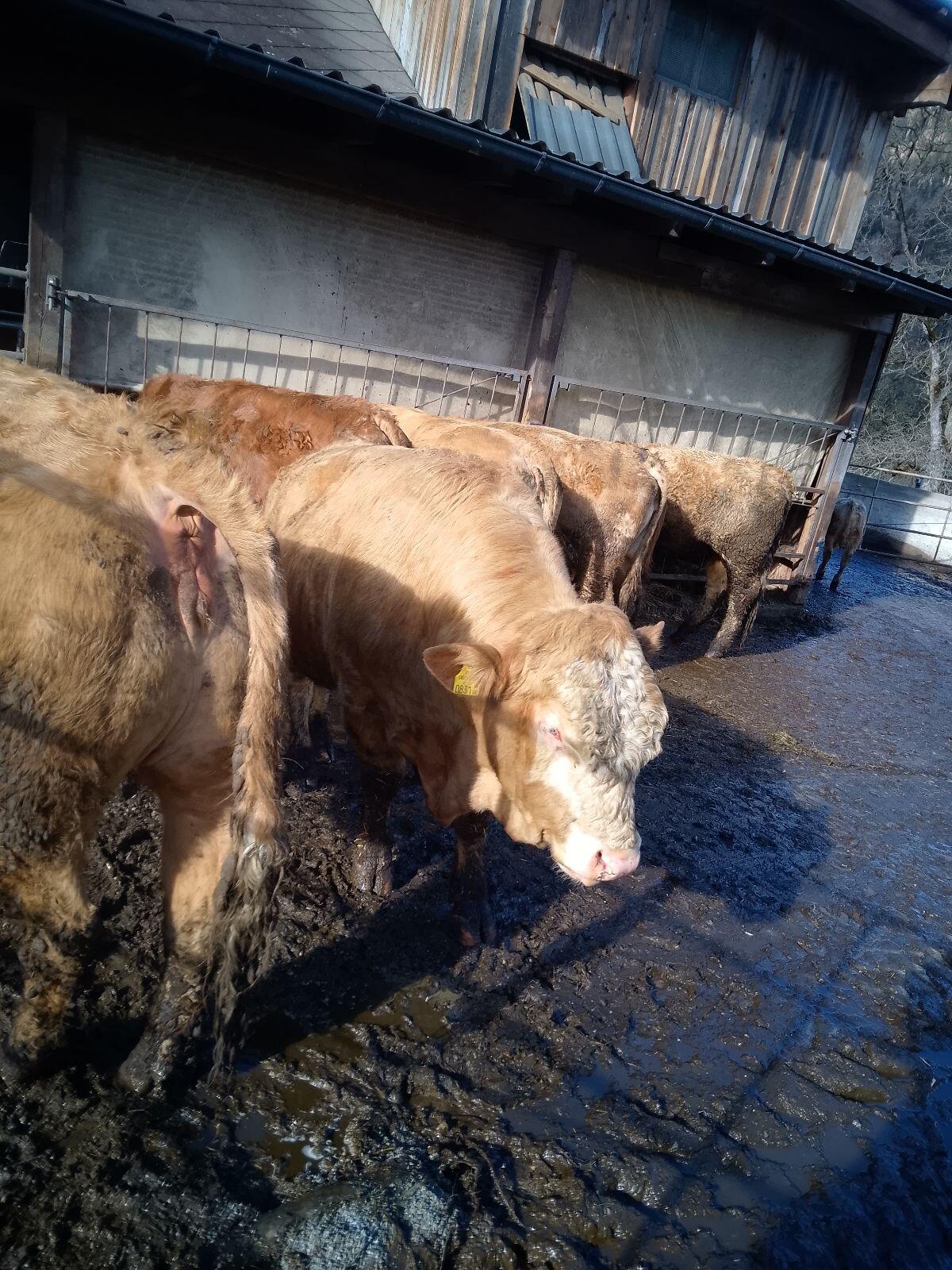 Verkaufe 25 Monate alten, genetisch hornlosen Bio-Sprungstier. Mutter Fleckvieh, Vater Charolais.