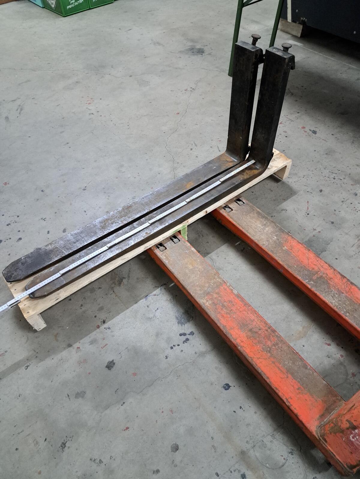 2 Gabelzinken gebraucht, guter Zustand, 115 cm lang, 10 cm breit und 40 mm stark. Abstand Aufnahme ca. 41 cm.
