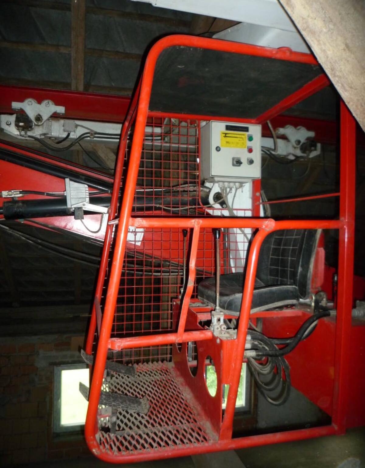 STEPA Hängedrehkran, Typ: HDK 049, Spurweite 2 m, hydr. Doppelkettenzug 8 m, Kurvenfahrwerk, Kurvenbahnbögen IPE 220, Stromzuführung 36 lfm., Schienenklauen.