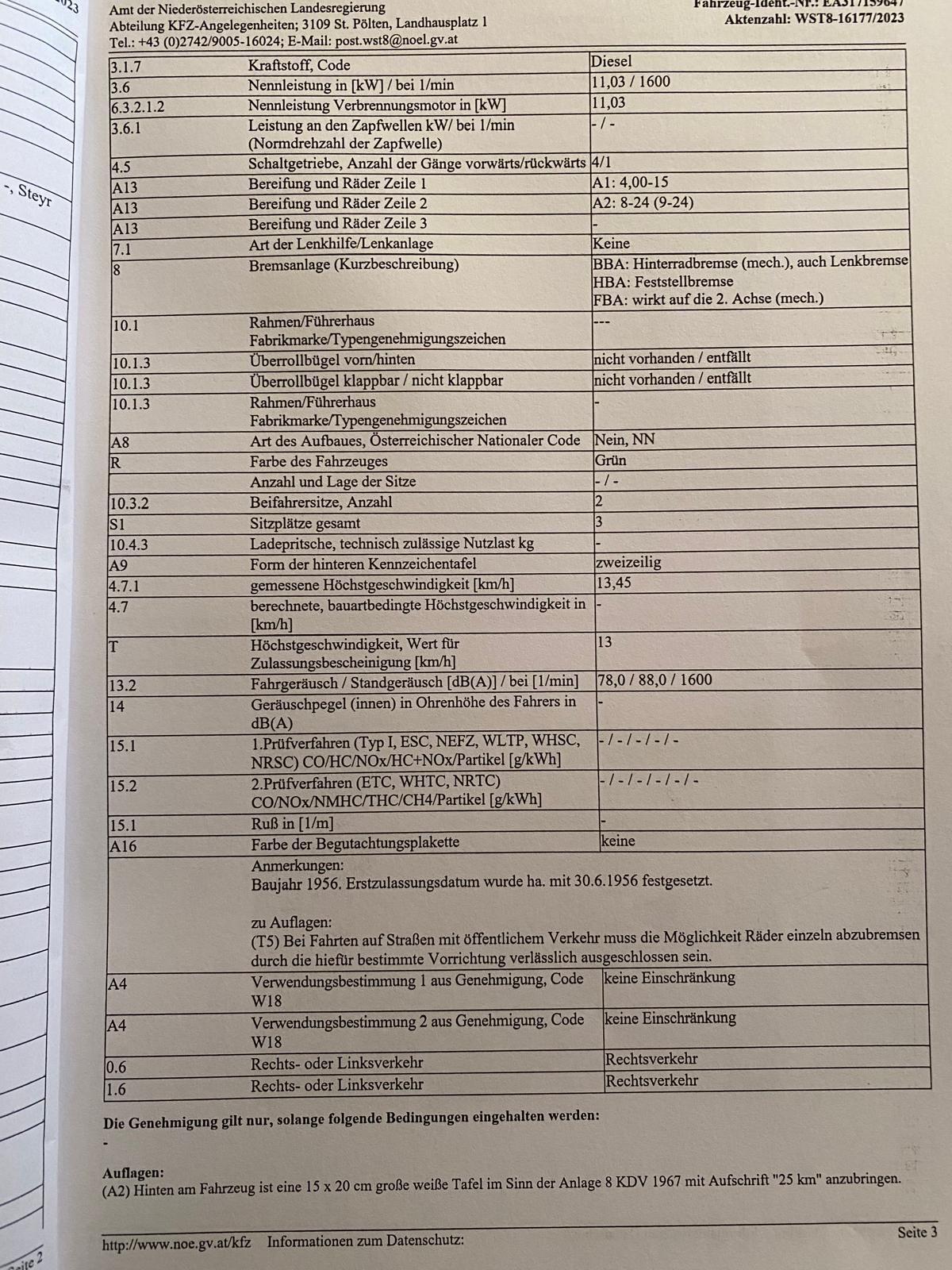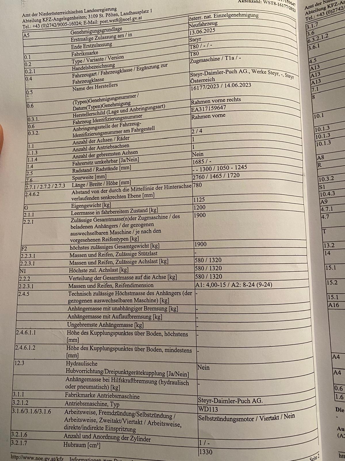 Steyr 15 T80 zu verkaufen, überprüft von der Landesregierung NÖ, Einzelgenehmigungsbescheid.