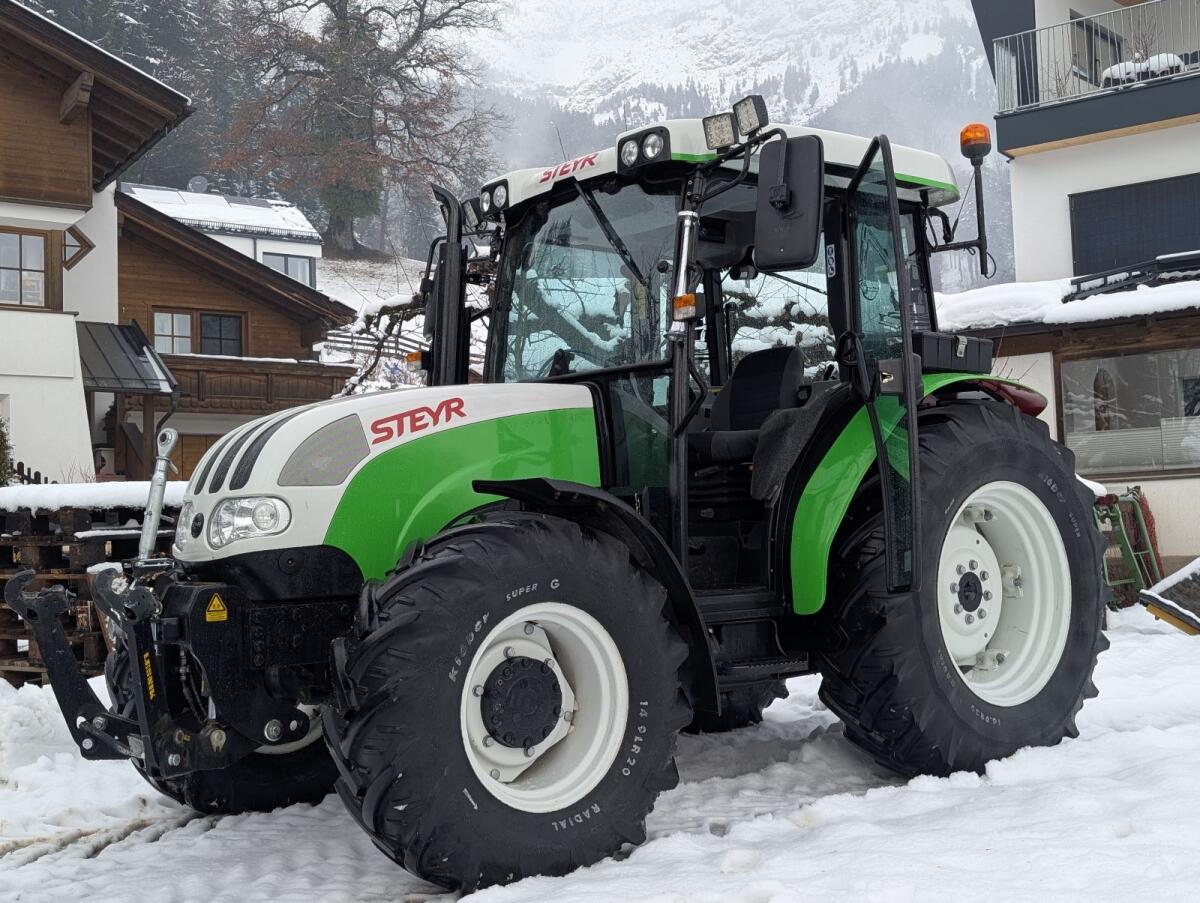 Verkaufe einen sehr gepflegten Steyr Kompakt 4075 mit nur 1.300 Bstd., Bj. 2012, grüne Folie darunter original Steyr Rot, kein Rost, Fronthydraulik nachgerüstet, 40 km/h Geschwindigkeit, Reifen ca. 75%, großes Service neu Februar 2026. Privatverkauf: daher keine Gewährleistung und Garantie. Gewicht: 3.475 kg, 4 Zylinder. Bereifung hinten: 420/70R30, Bereifung vorne: 360/70R20.