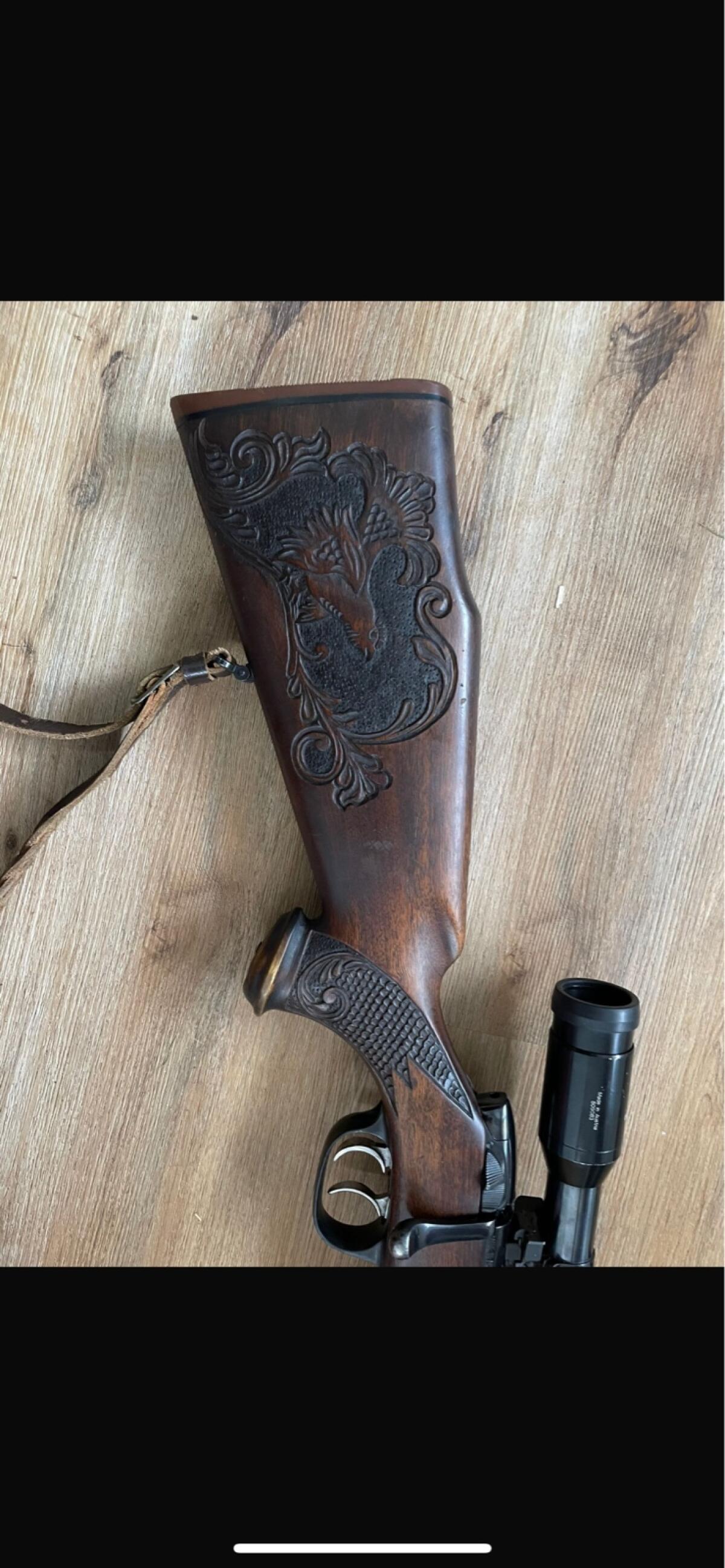 Sehr guter Zustand, Swarovski 8x56, Schaft geschnitzt, Gewinde 15/1, Schussbild sehr gut. Preis Verhandlungsbasis.