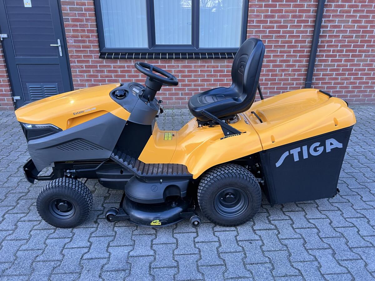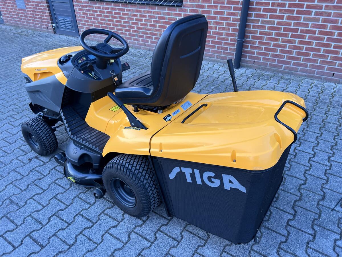 Stiga Estate 6102 HW Gartenmäher in gutem und gepflegtem Zustand. Bj.: 2019, 124 Bstd. Hydrostatischer Antrieb (läuft ruhig ohne Schalten), 102 cm Mähwerk, leistungsstarker Briggs & Stratton-Motor, großer Grasfangkorb, bequemer Sitz und stabile Fahreigenschaften. Die Maschine springt gut an, mäht sauber und ist sofort einsatzbereit. Ideal für mittelgroße bis große Gärten. Preis ist Marge.