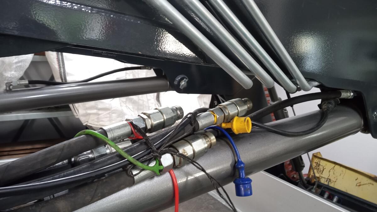 Profiline FZ 43-27, Euroaufnahme, 916 mm, mechanische Parallelführung, hervorragende An- und Abkippwinkel, 3ter Steuerkreis, mechanische Zentralverriegelung, Farbe RAL 7021, wenig benutzt und sofort einsatzbereit.