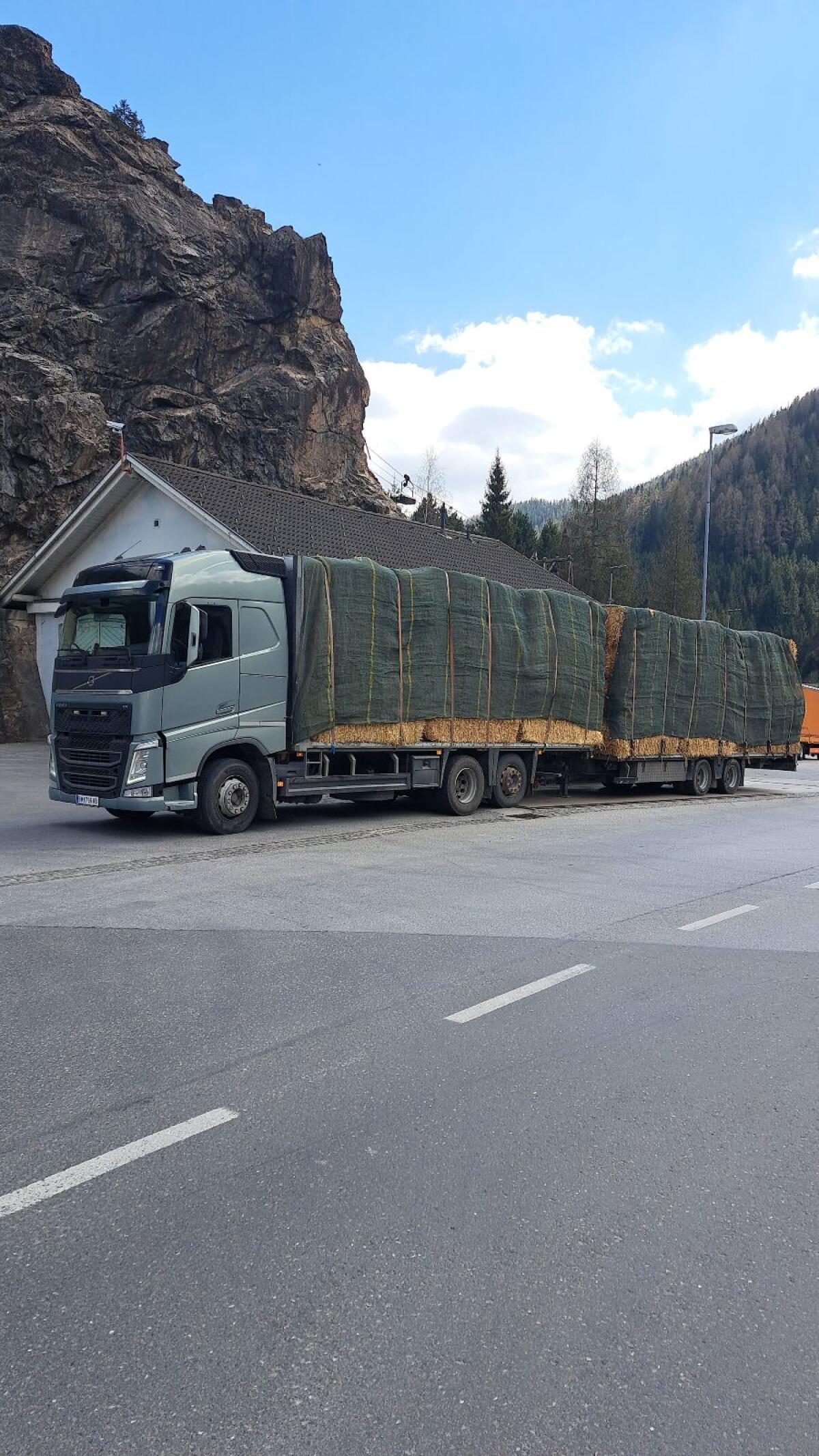Volvo FH12 mit Tandemanhänger, Aufbau für den Heu- und Strohtransport angefertigt.