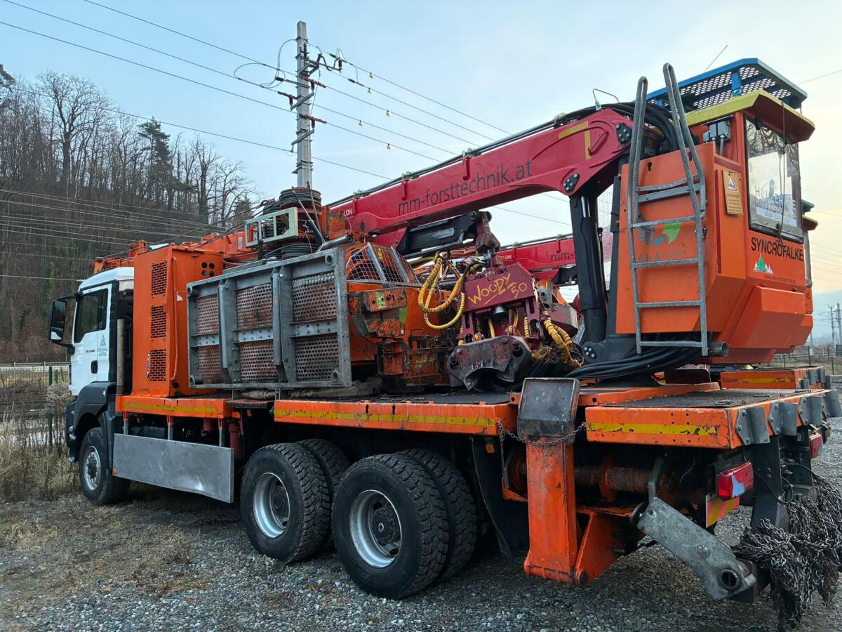Zu verkaufen ist ein top erhaltener 2019 Syncrofalke 3t. Bj.: 2019, 800 m (18,5 mm) Tragseil, 1.600 m (11 mm, 9 mm) Zug- und Hilfsseil, MAN TGS 6x6, Epsilon S280L94 Ladekran mit Woody WH52, MM Sherpa U 3t. Sofort verfügbar und zur Besichtigung bei MM Forsttechnik in Frohnleiten.