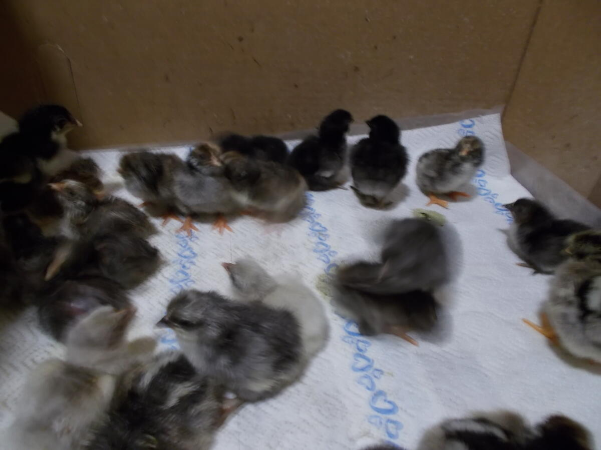 Tagesküken meiner gemischten Truppe (Bielefelder, Wyandotte, Bresse gauloise grise,...) mit Barnevelderhahn silberschwarz doppeltgesäumt zu verkaufen. Schlupf ist der 18.02.
