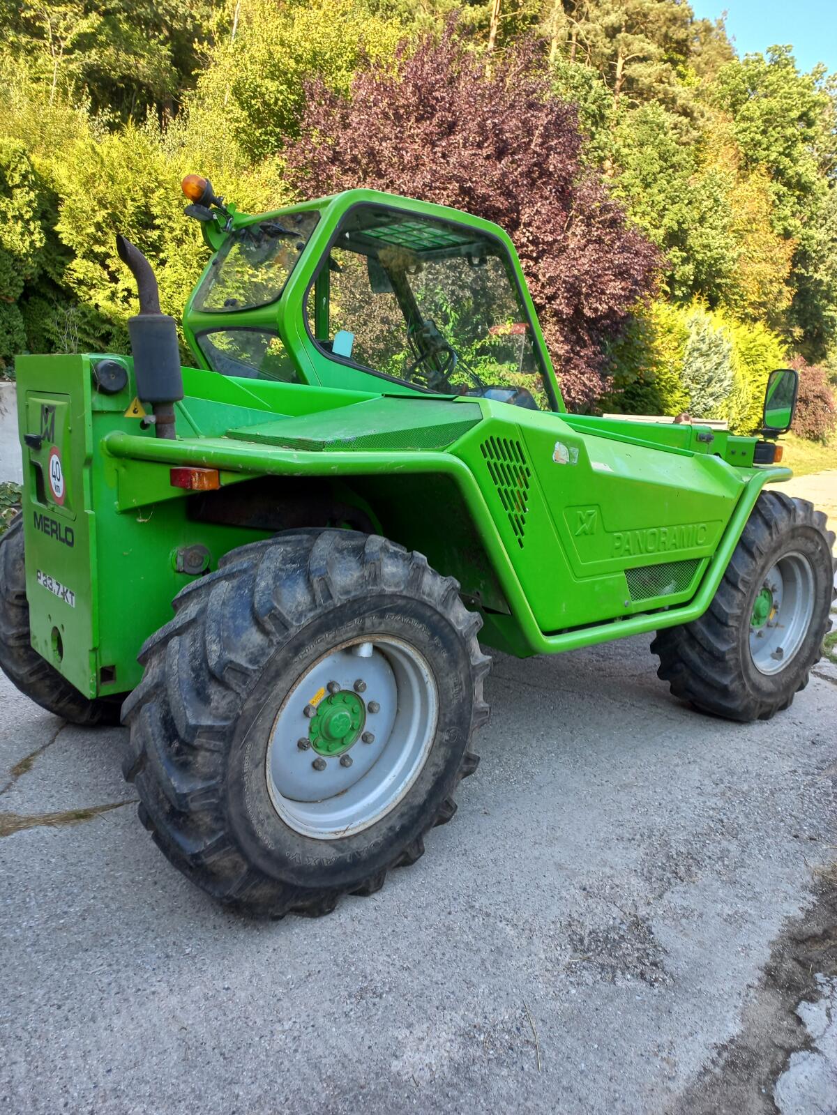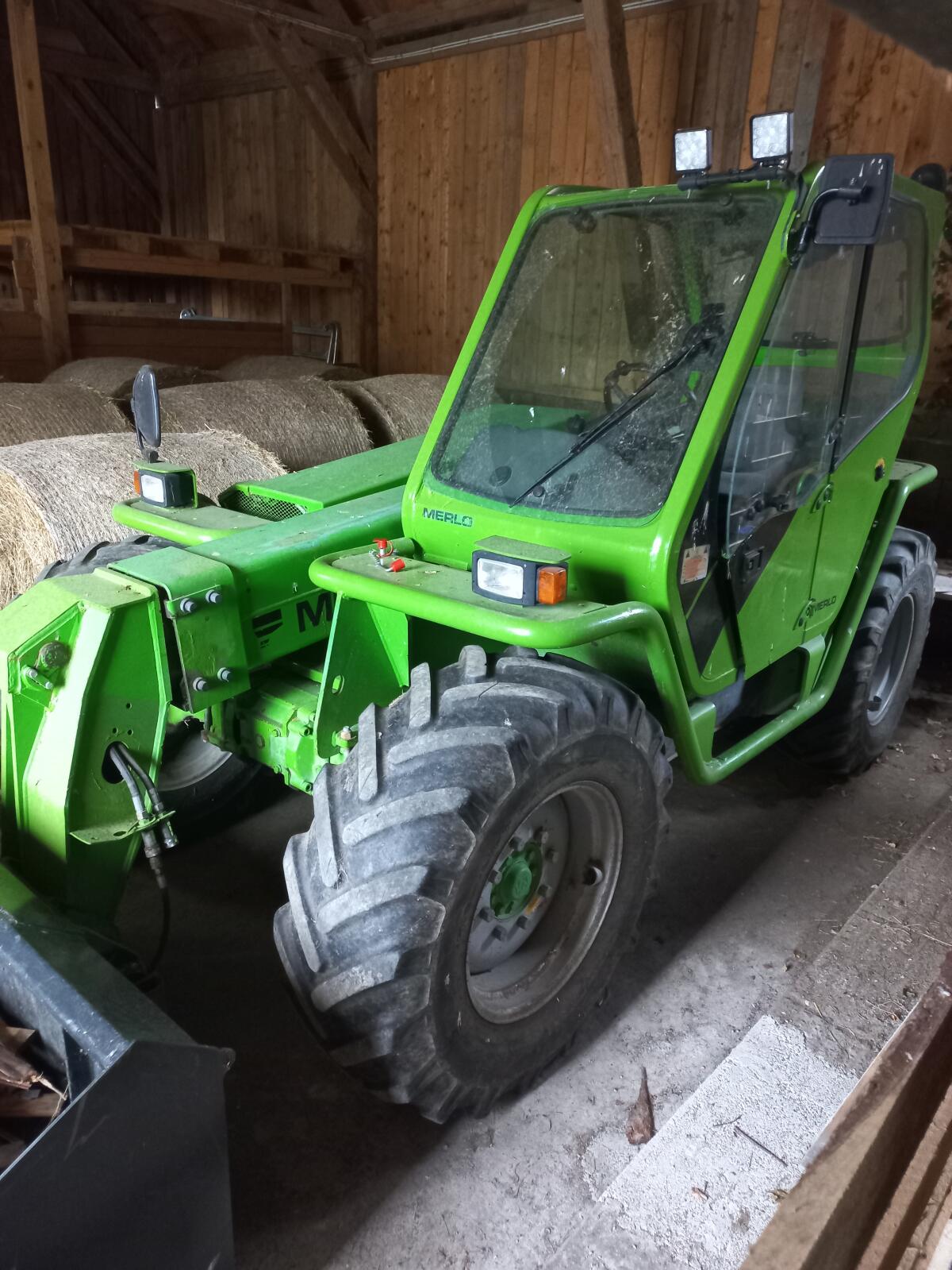 Verkaufe gebrauchten Merlo P 33.7 Teleskoplader im guten, servicegepflegten Zustand. 40 km Ausführung, leider ohne Typenschein. 3 Lenkungsarten, Breite 2,20 m, Höhe 2,50 m. Hubleistung 3,3 t, Ausschub 7 m. Es funktioniert alles, Hydrostat in Top-Zustand. Dabei sind Leichtgutschaufel 2,2 m, Palettengabel und Adapter auf 3-Punkt Kat 2. Das einzige, was gemacht werden muss in nächster Zeit, vorne bei Aufnahme die Buchsen.