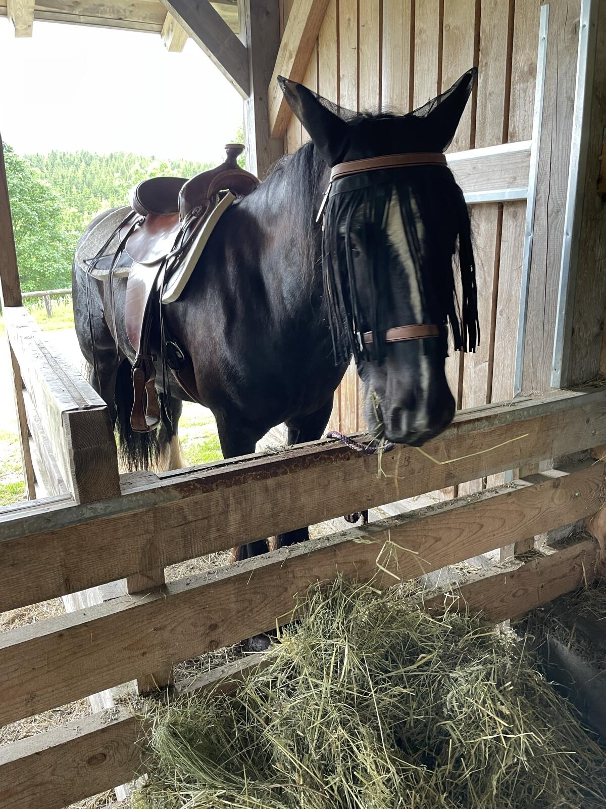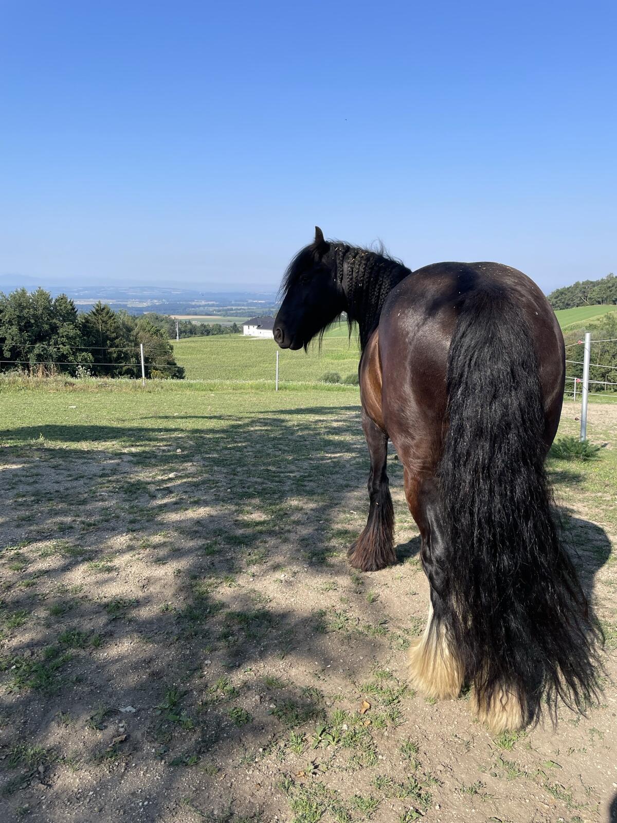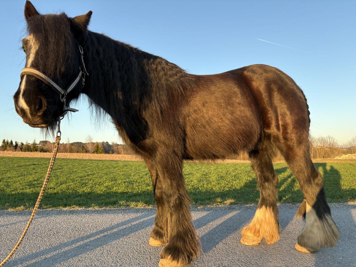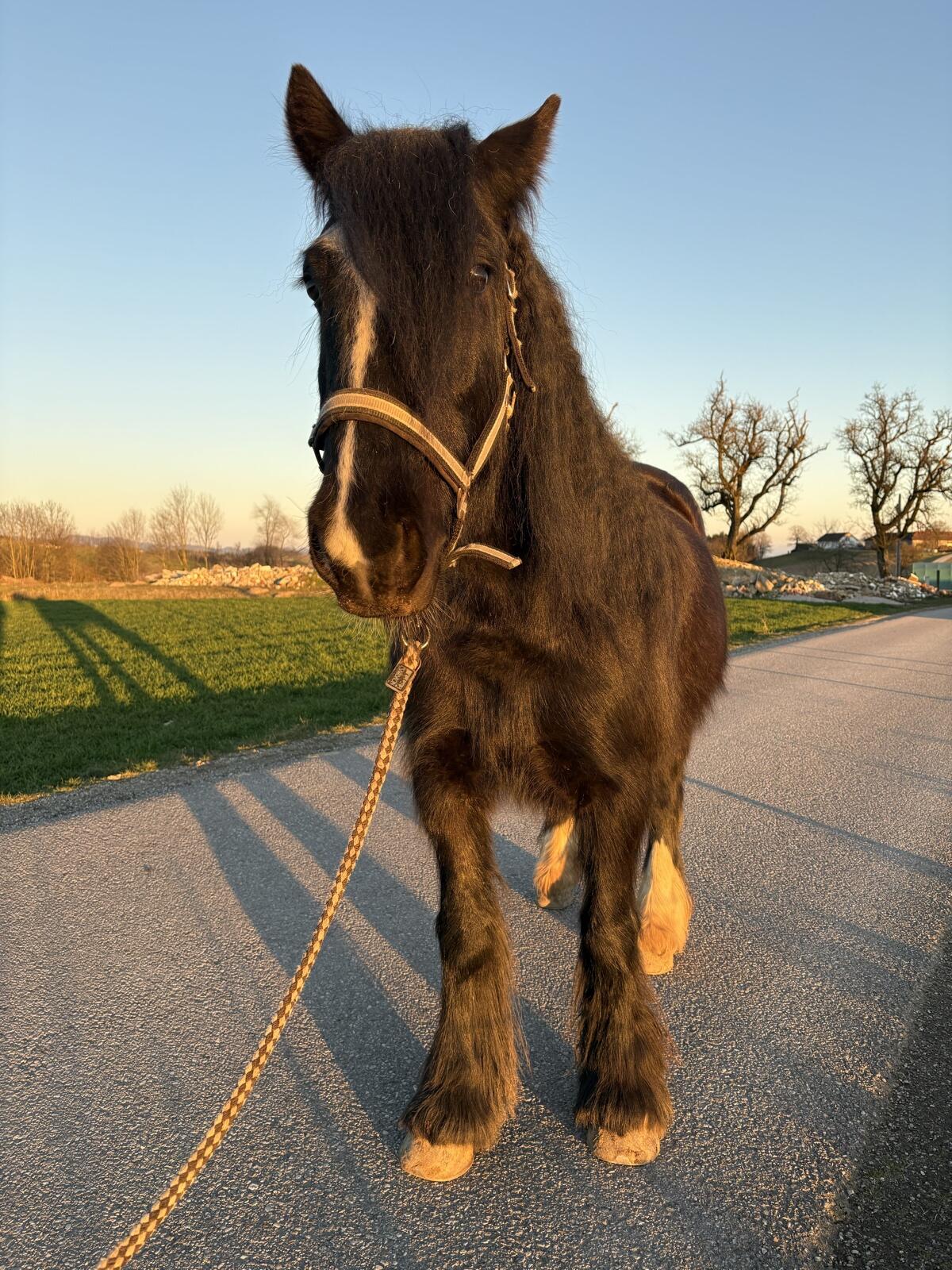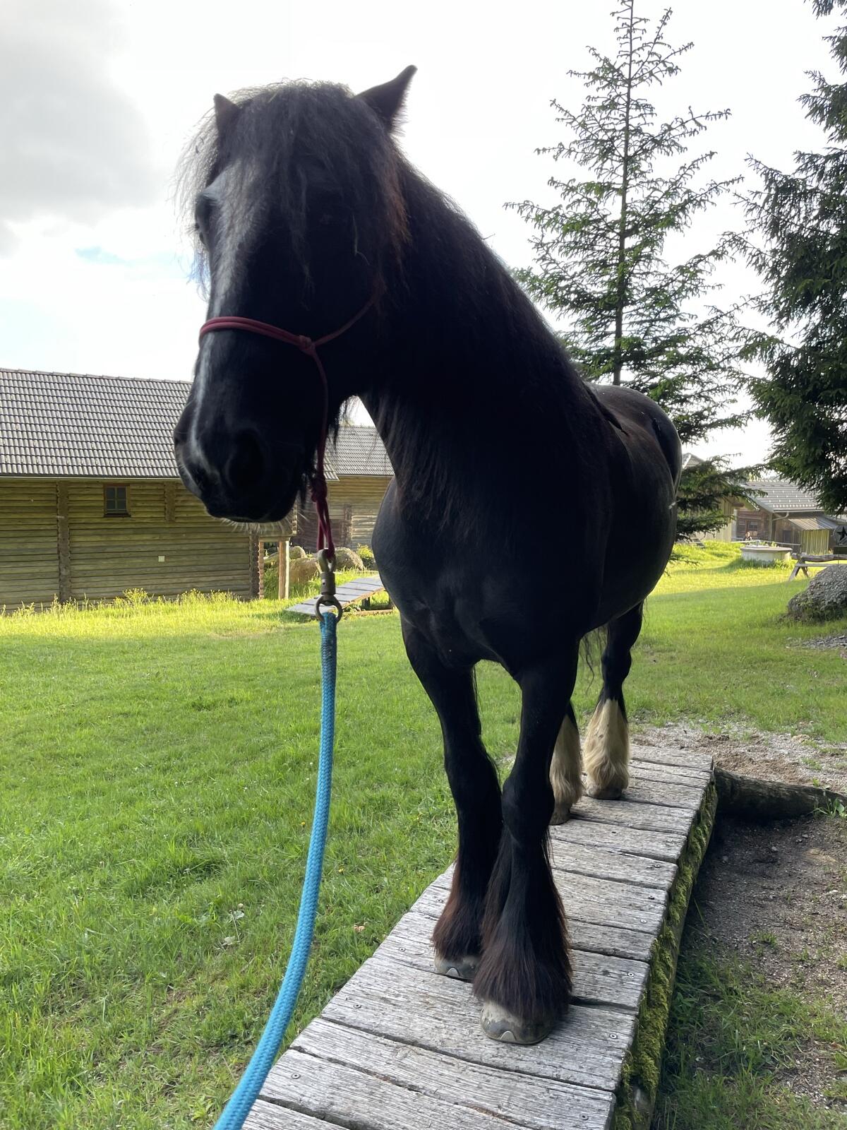 Unser Arthur ist ein Tinker mit 1,47 m Stockmaß und ist 9 Jahre alt. Er wurde viel im Gelände geritten und ist in der Gruppe ein tolles Ausreitpferd. Am Reitplatz in allen drei Gangarten geritten. Bodenarbeit, Working Equitation, Wanderreiten, spazieren, er ist für alles zu begeistern. Solange Arthur ein zweites Pferd dabei hat, ist er ein super braver Wallach, alleine eher ängstlich und schreckhaft, deshalb braucht er da einen sicheren Reiter. Steht im Offenstall in gemischter Herde, bleibt aber auch alleine in der Box. Geht brav auf den Hänger, brav beim Schmied (zurzeit Barhuf).
