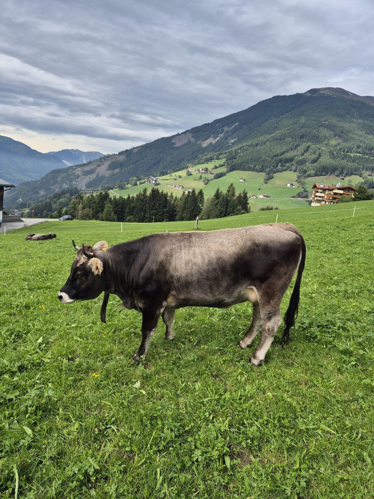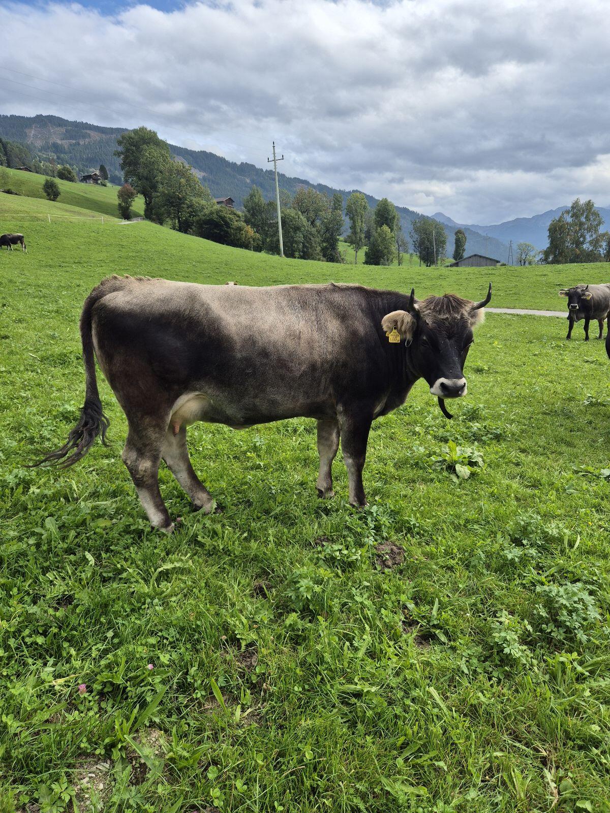 Verkaufe original Tiroler Grauvieh Kuh Erstlingskuh Bio vom Biobergbauern Heumilchbetrieb, Herdebuch, Vater Seadan, Mutter war eine gute Milchkuh mit einer Bewertung von 8.878, belegt am 30.08.25. Sehr feines Wesen, Zustellung möglich.