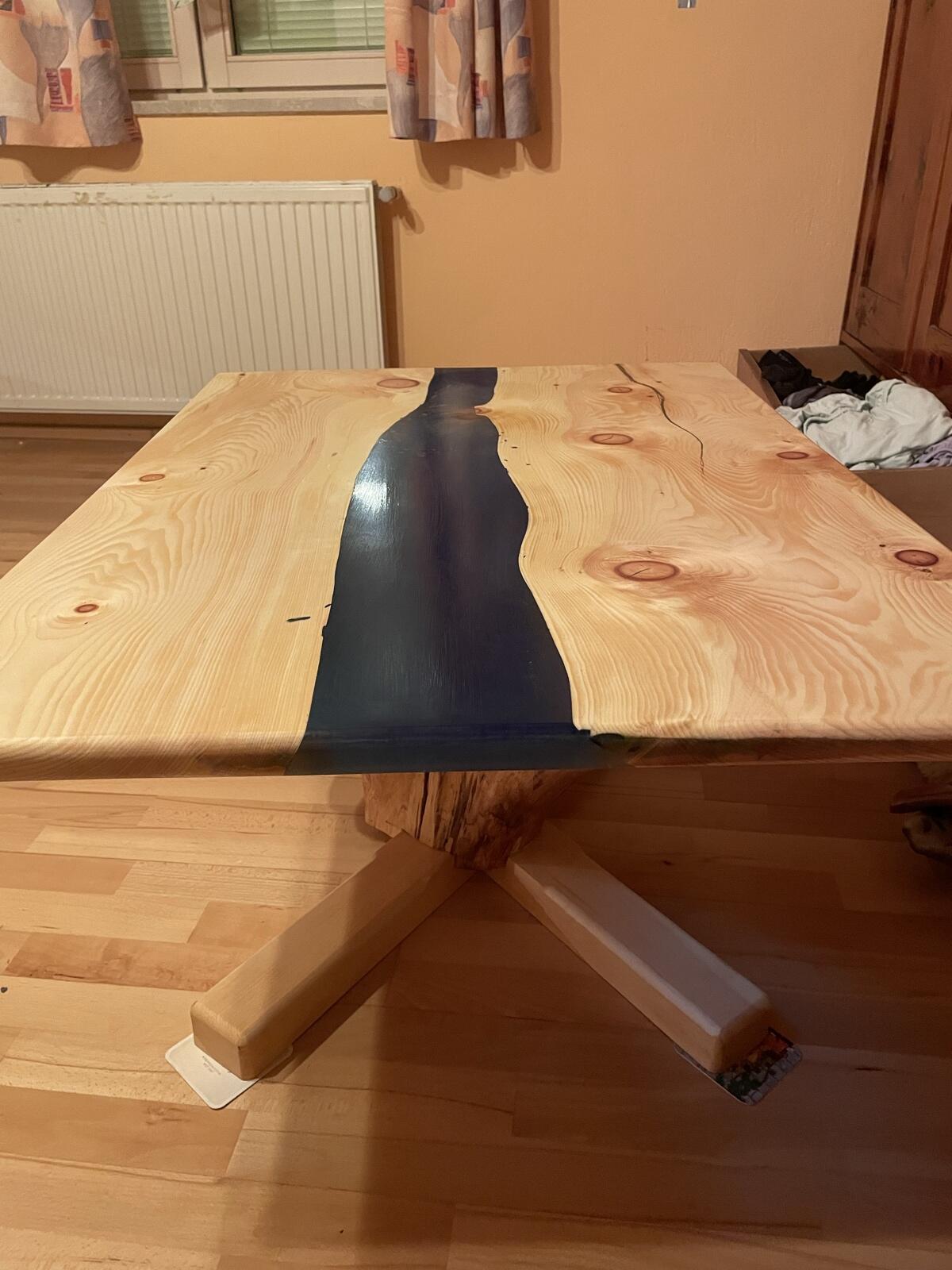 Couchtisch aus Zirbenholz, naturbelassen, mit Wachs eingelassen. Höhe ca. 45 cm, Länge x Breite 100 x 78 cm. Preis VB, bitte melden. (Tisch, Wohnzimmer, Küche, Möbel, Deko, Massivholztisch, Couchtisch, Epoxidharz, Epoxy, Resin Tisch, River Table, Epoxy River, Epoxidharztisch, Harztisch, Naturholz, Zirbe, handgefertigt, handgemacht, Unikat, Einzelstück, modern, rustikal, Industrial Style, Loft Style, Designer Tisch, Natur Design, modernes Wohnen, Möbel, Einrichtung, Holzbeine, blaues Epoxidharz).