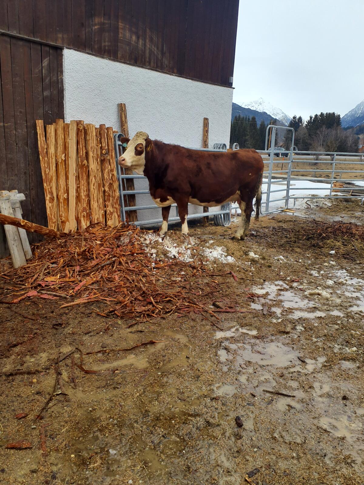 Verkaufe trächtige (2 Kalb) Bio Heu Kuh. Voraussichtlicher Abkalbetermin: 5. März 2026. Anbindehaltung, Auslauf, Weide, sehr gutmütiges und ruhiges Tier.