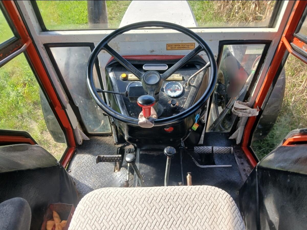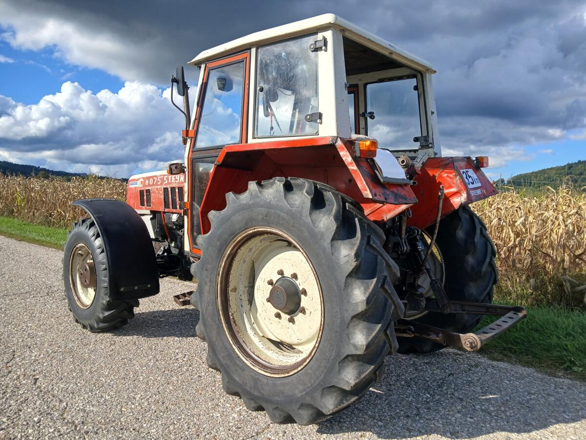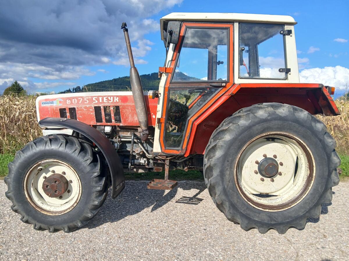 Traktor 8075 Allrad, trocken, Motor 4 Zylinder, Getriebe Steyr, Achse ZF, Stg.: 1EW, 1DW, 1DRL, Zähler steht, Oberlenker, Schiene, Zugmaul, Arbeitsscheinwerfer vorne, Fotos 25.09., wird bewegt.