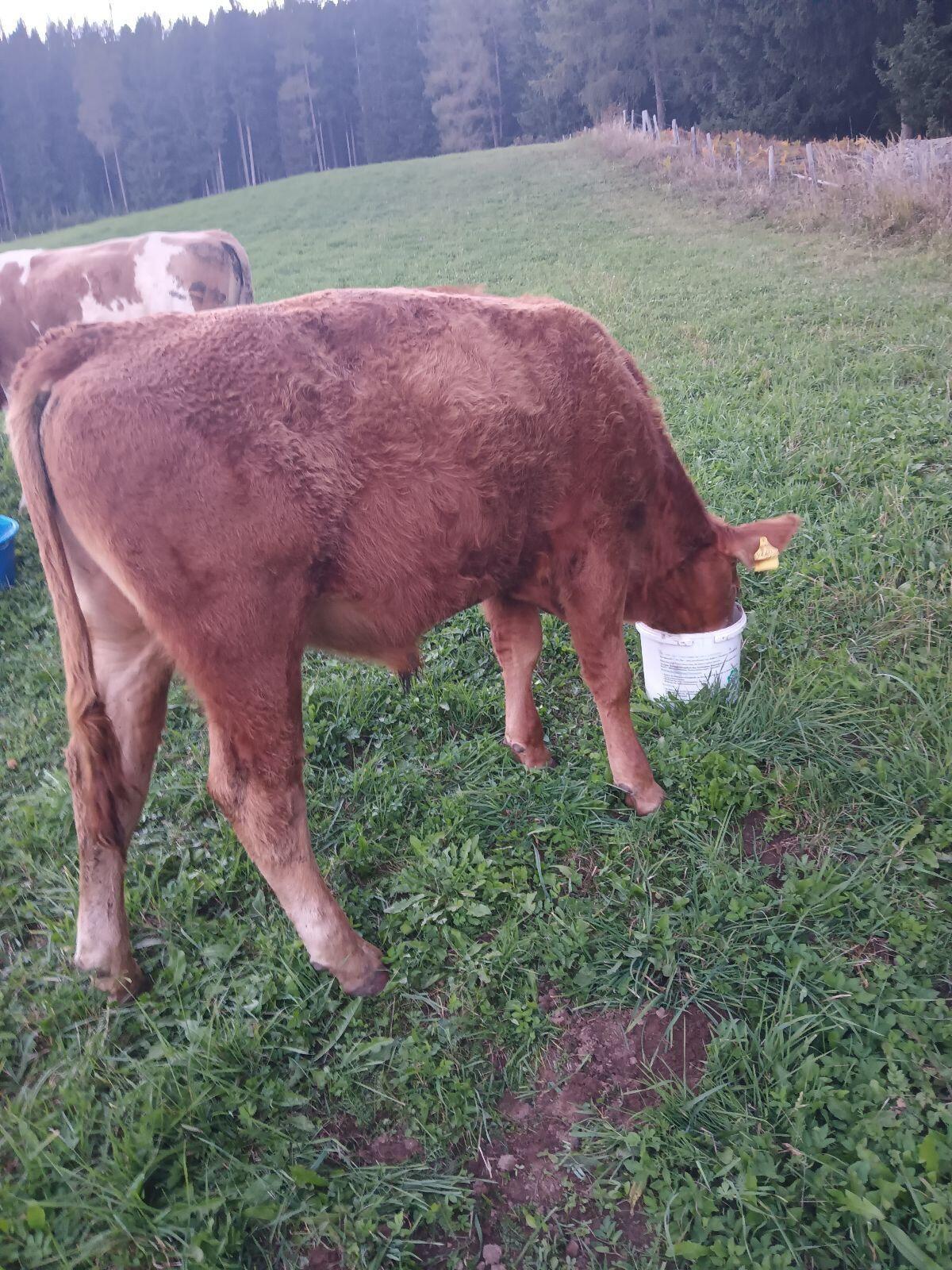 Biobetrieb verkauft gutmütigen, enthornten Jungstier. (50% Fleckvieh, 50% Limousin). Er deckt gut, er ist halfterführig. Aus Anbindehaltung.